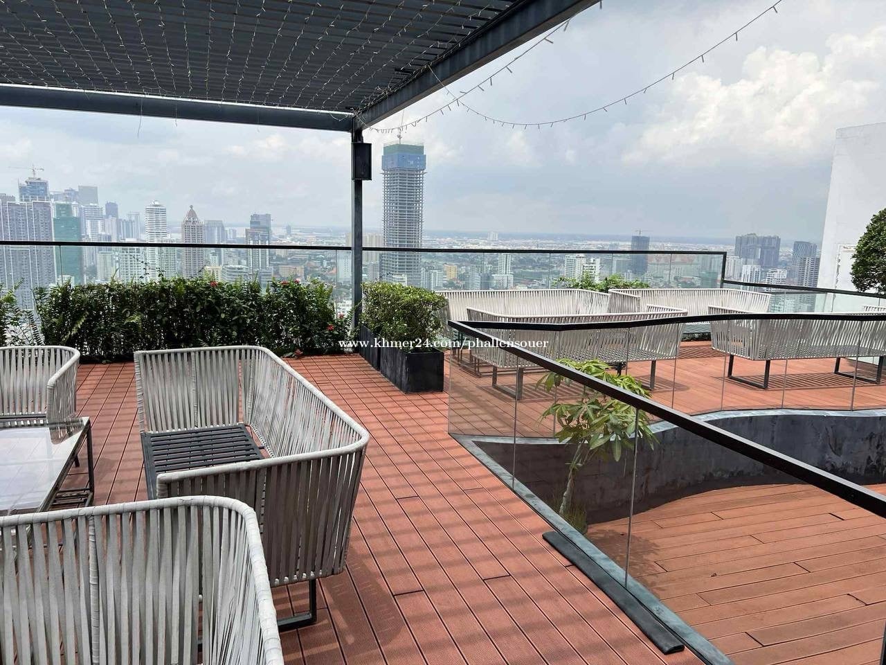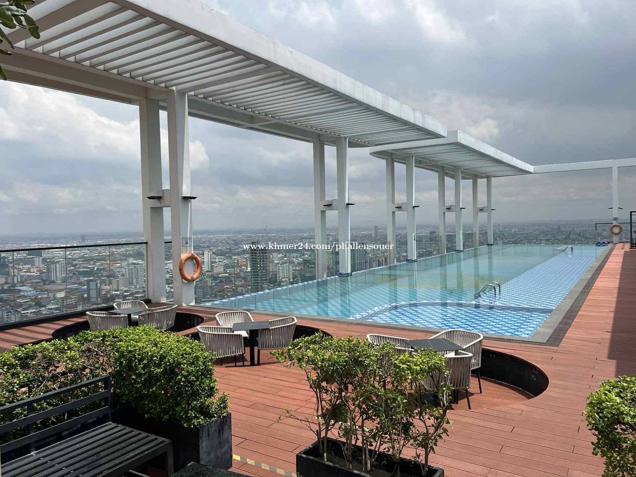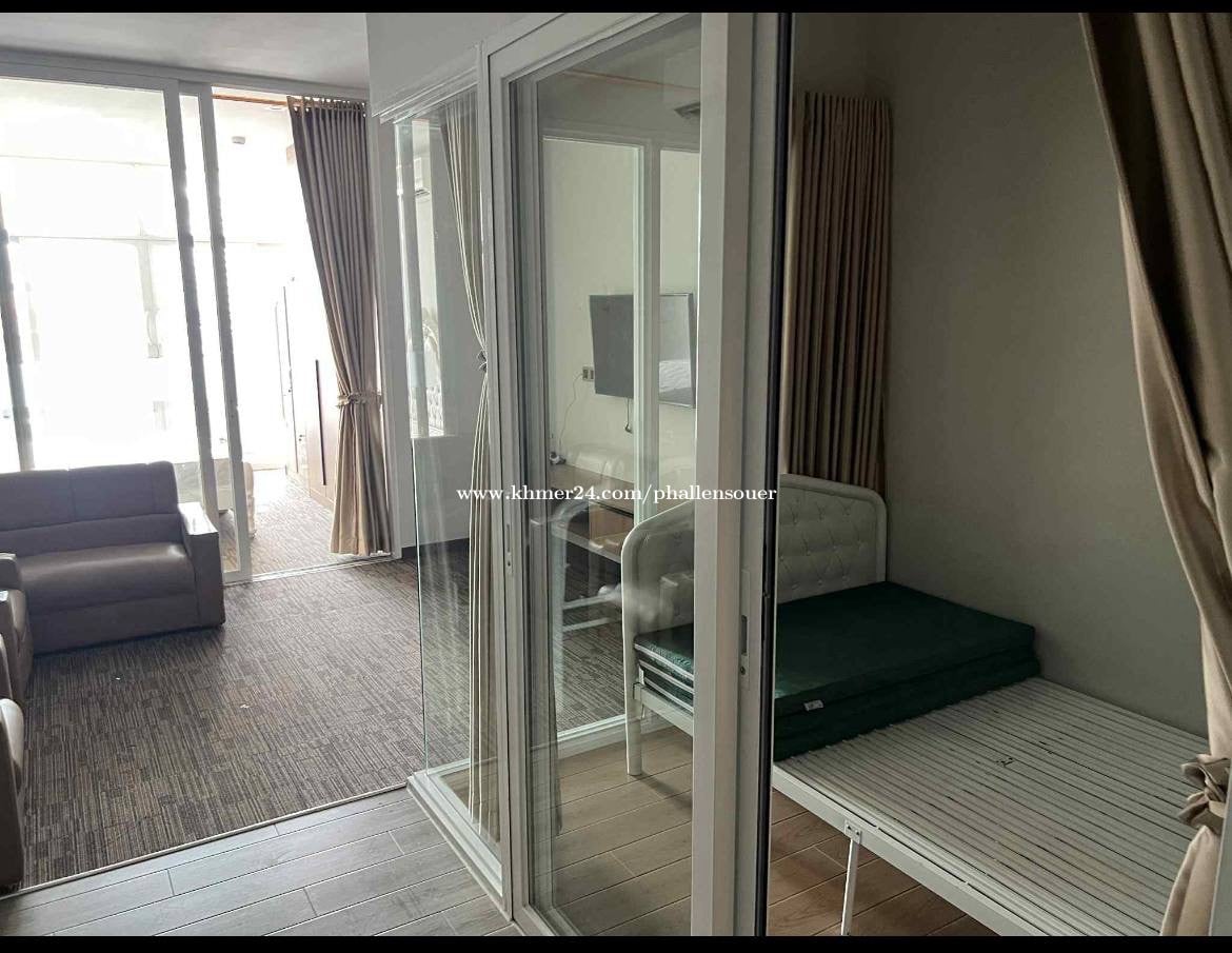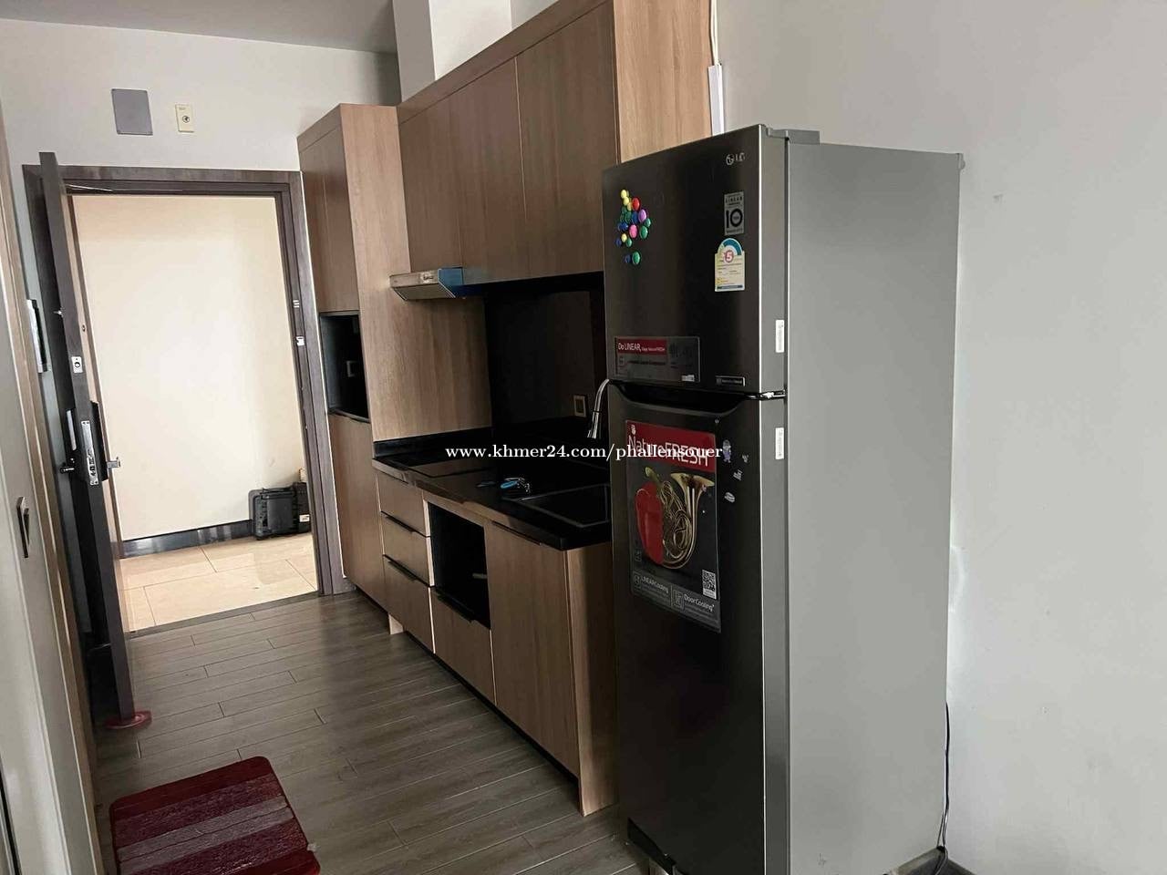 Fully furnished 2-bedroom Condo (one big and one small): 7th floor តម្លៃជួល: $450/month ថ្លៃភ្លើង: $.025/khw ថ្លៃទឹក: $0.40/m3 តម្លៃចំណតឡាន: $50 តម្លៃ management fee: $94.17 ទំហំបន្ទប់: 62.78sqm2 ទីតាំង: Golden One Serviced Apartment 116, street 360 សេវា នៅខុនដូ: កន្លែងហាត់ប្រាណ steam sauna, swimming pool at top-floor, cafe shop ground floor, Japanese clinic, Japanese restaurant, Sky Bar, Korean restaurant surrounding