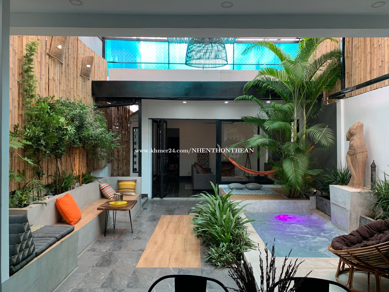 Townhouse For Rent In Tonle Bassac, next to BKK1 Available: End of Jan 2025 Price: $1400$ Per month 2Bedrooms 2Bathrooms plus 1 toilet Fully furnished 1 Jacuzzi EDC and Water pay directly bill to state. It is very good for living and office safe area no flooding.