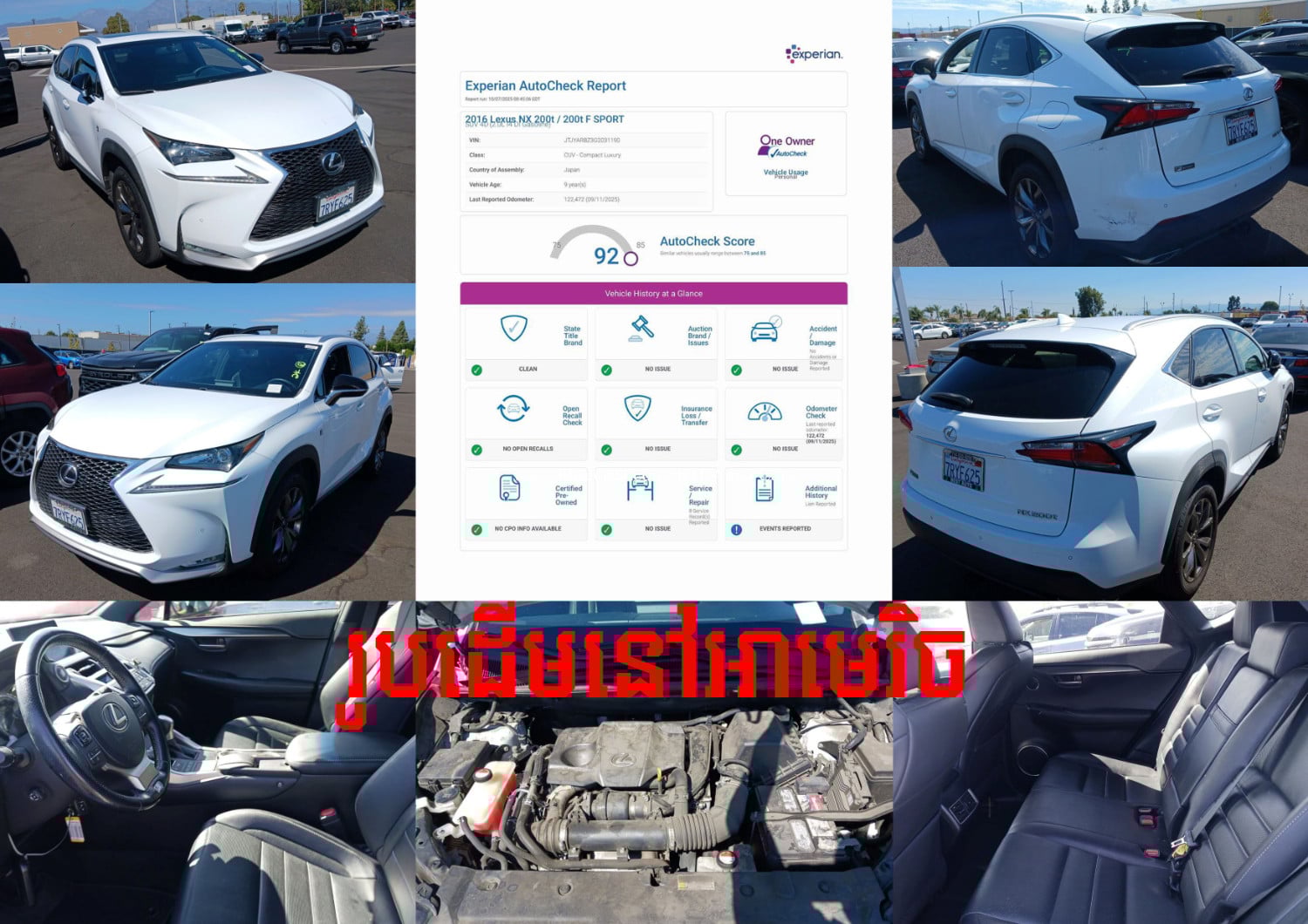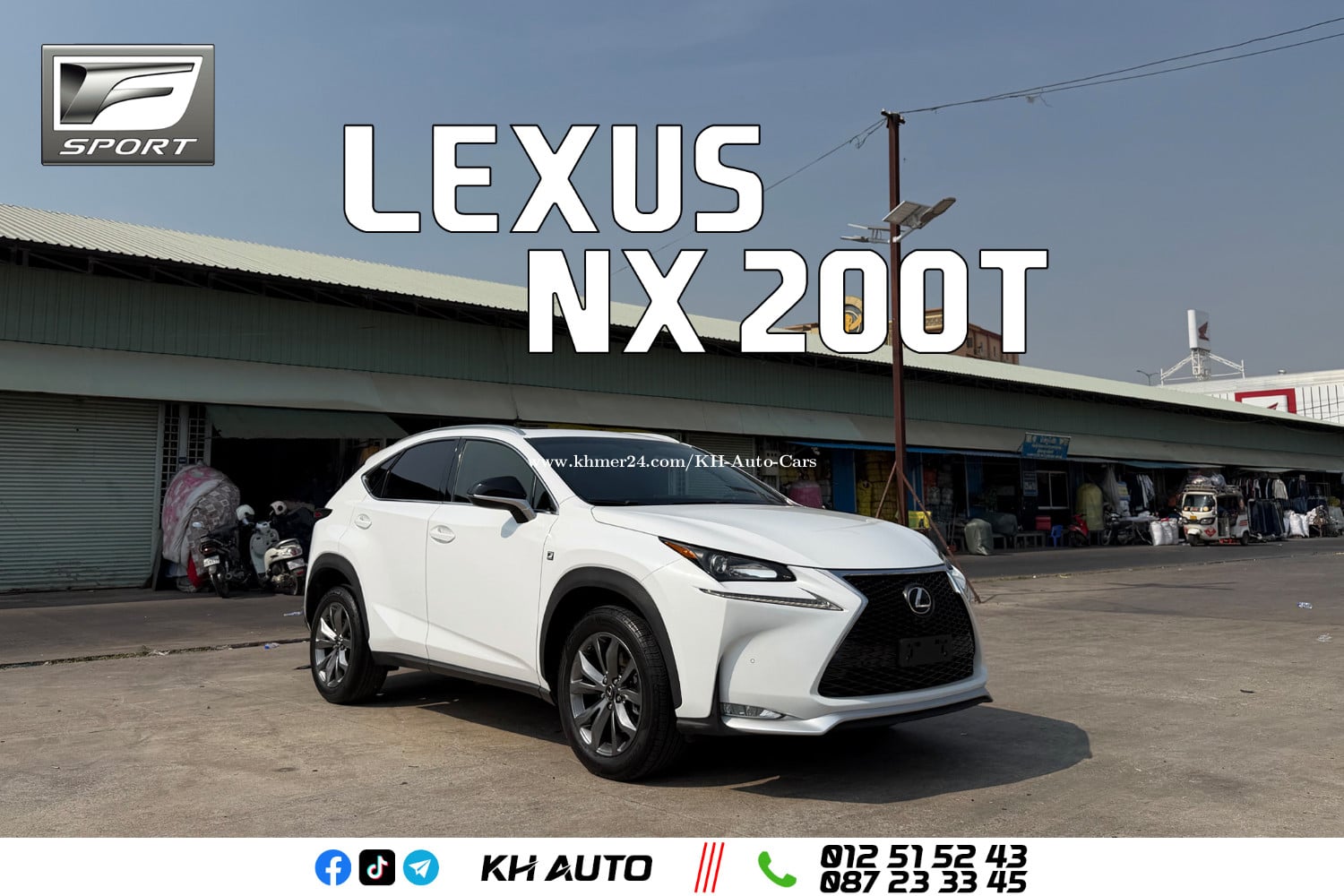 KH Auto សូមស្វាគមន៍🙏 💵តំលៃត្រឹមតែ : $42800 (ឡានក្រដាសពន្ធ) 🚘ម៉ូឌែល(Model) : LEXUS NX 200T F-Sport ប្រភេទមេឡាន 🚘ឆ្នាំផលិត(Year) : 2016 🚘ពណ៌ខាងក្រៅ (Exterior) : White (ស) 🚘ពណ៌ខាងក្នុង (Interior) : Black (ខ្មៅ) 🚘ប្រភេទប្រេងឥន្ធនៈ (Fuel) : សាំង 💸ការធានារយៈពេលមួយខែទៅលើ 🎉ម៉ាស៊ីន 🎉ប្រអប់លេខ 🎉អាគុយ 🎉ABS 💸ទិញចូល លក់ចេញ និង បង់រំលស់ 📞ព័ត៌មានលម្អិត សូមទំនាក់ទំនងមកកាន់ KH Auto➗ 📲012515xxxClick To Call (Telegram) 📲087233xxxClick To Call (Telegram) 📲077228xxxClick To Call (中文) 🏦ទីតាំងនៅជិតភ្លើងស្តុបទេពផន🙏។