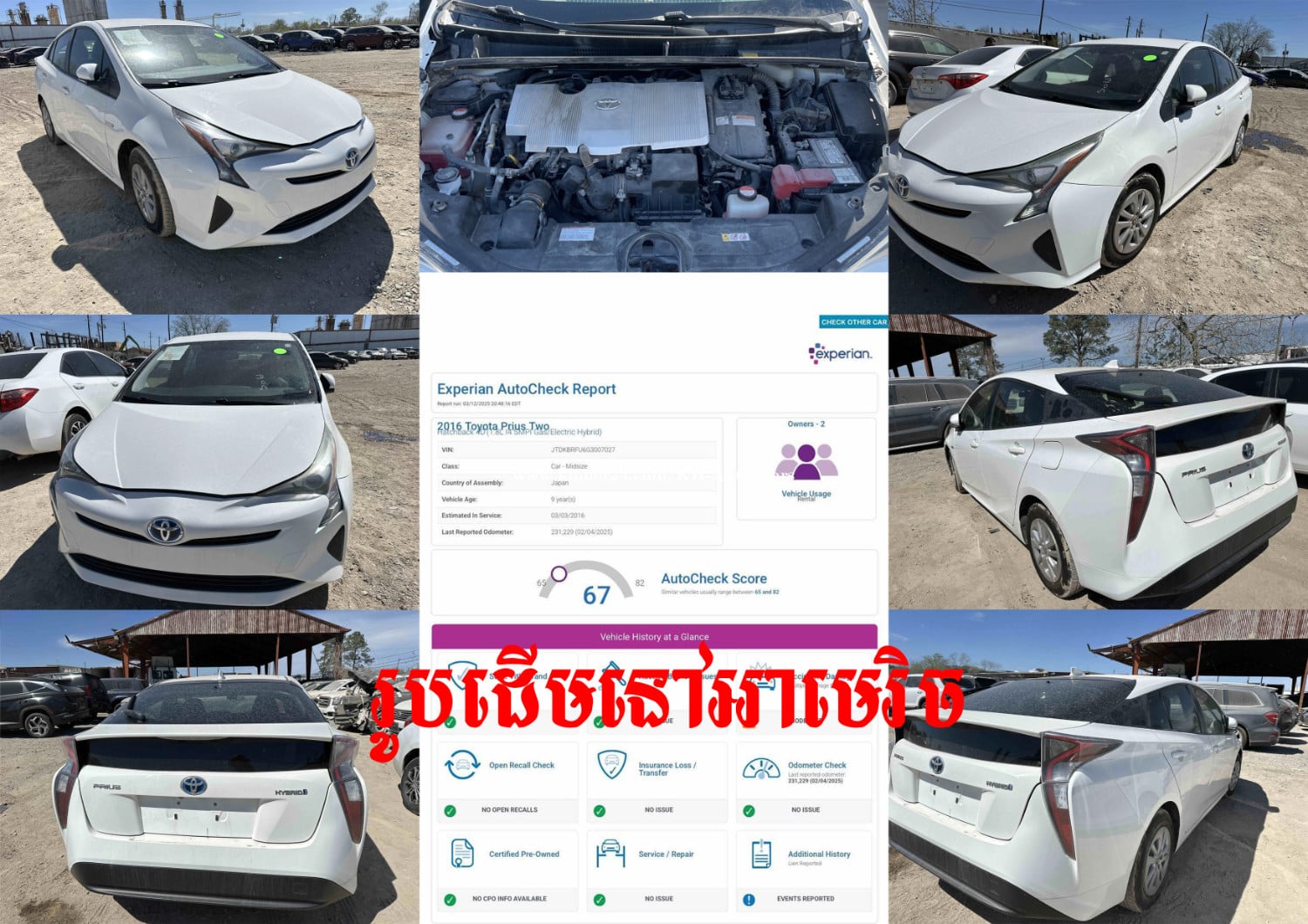 KH Auto សូមស្វាគមន៍🙏 រថយន្ត Toyota Prius ប្រភេទក្រដាសពន្ធបានមកដល់ហើយ។ 💵តំលៃត្រឹមតែ : $25500 (ឡានក្រដាសពន្ធ) 🚘ម៉ូឌែល(Model) : Toyota Prius ប្រភេទឡាន DEALER ឡានស្អាត 🚘ឆ្នាំផលិត(Year) : 2016 🚘ពណ៌ខាងក្រៅ (Exterior) : White (ពណ៌ស) 🚘ពណ៌ខាងក្នុង (Interior) : Black(ពណ៌ខ្មៅ) 🚘ប្រភេទប្រេងឥន្ធនៈ (Fuel) : Hybrid 💸ការធានារយៈពេលមួយខែទៅលើ 🎉ម៉ាស៊ីន 🎉ប្រអប់លេខ 🎉អាគុយ 🎉ABS 💸ទិញចូល លក់ចេញ និង បង់រំលស់ 📞ព័ត៌មានលម្អិត សូមទំនាក់ទំនងមកកាន់ KH Auto➗ 📲012515xxxClick To Call (Telegram) 📲087233xxxClick To Call (Telegram) 📲077228xxxClick To Call (中文) 🏦ទីតាំងនៅជិតភ្លើងស្តុបទេពផន🙏។