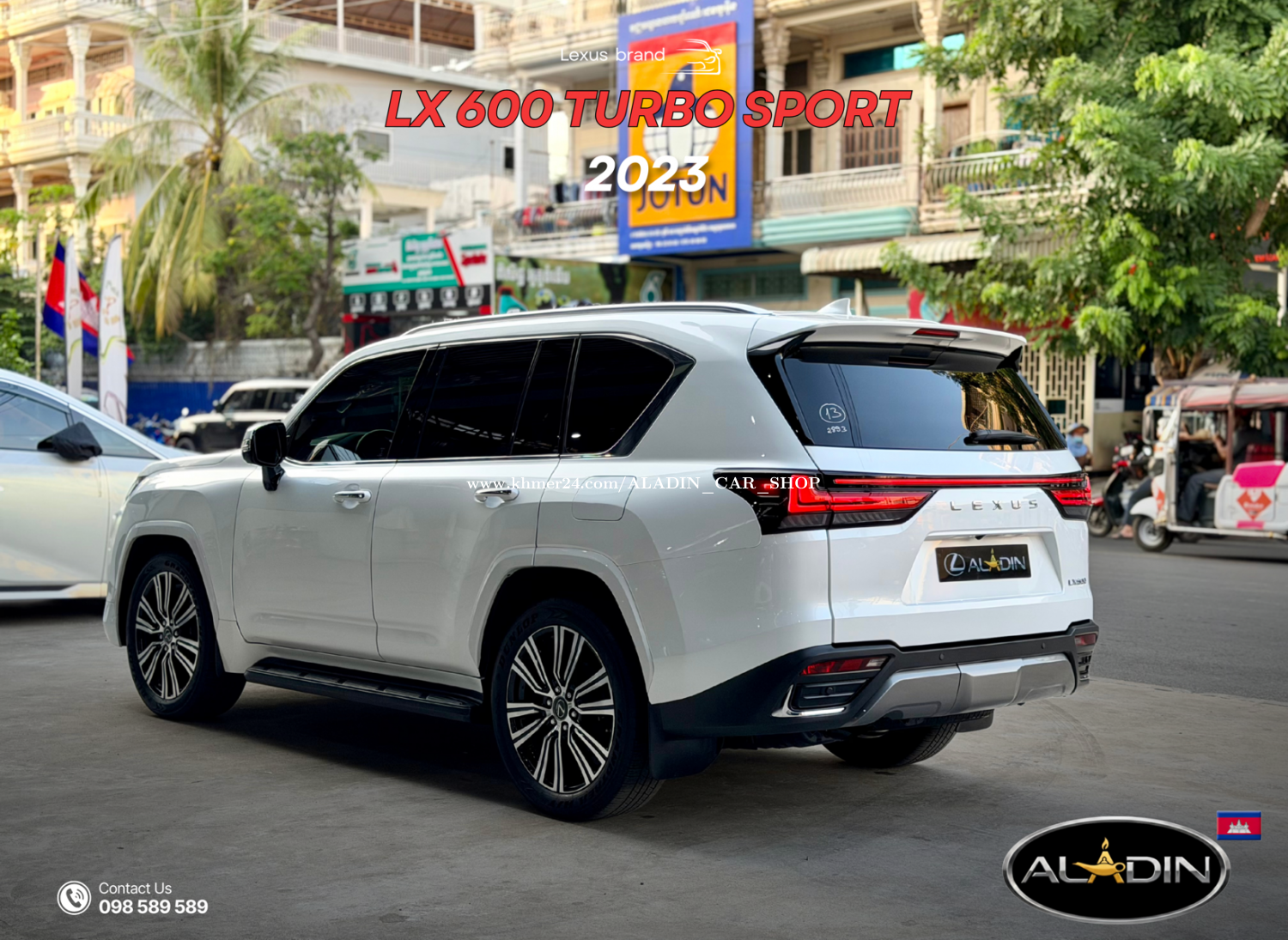 𝟮𝟬𝟮𝟯 𝗟𝗲𝘅𝘂𝘀 𝗟𝗫 𝟲𝟬𝟬 𝗧𝘂𝗿𝗯𝗼 𝘀𝗽𝗼𝗿𝘁 (𝗙𝘂𝗹𝗹 𝗼𝗽𝘁𝗶𝗼𝗻) - មកដល់ស្តុក 𝗔𝗹𝗮𝗱𝗶𝗻 ហើយ! 💎 ស្ដេចឡានក្នុងក្ដីស្រមៃ ពណ៌សកាម៉ៃ ក្នុងឈឺរី ដ៏ទាក់ទាញ និងប្រណីតបំផុត។ • ពណ៌: ស (Exterior) / ឈឺរី (Interior) • Full Option :𝗠𝗮𝗿𝗸 𝗟𝗲𝘃𝗶𝗻𝘀𝗼𝗻 𝟮𝟱 គ្រាប់, កៅអីម៉ាស្សា និងត្រជាក់-ក្តៅ (Ventilated Seats), ទូរទឹកកកសម្រាប់ក្លាសេភេសជ្ជៈ, កាមេរ៉ា 𝟯𝟲𝟬 ដឺក្រេរួមជាមួយអេក្រង់បង្ហាញព័ត៌មានលើកញ្ចក់ឡាន (𝗛𝗨𝗗) និង𝗟𝗲𝘅𝘂𝘀 𝗦𝗮𝗳𝗲𝘁𝘆 𝗦𝘆𝘀𝘁𝗲𝗺+ 𝟯.𝟬 • បច្ចេកវិទ្យា: បញ្ឆេះពីចម្ងាយ (𝗥𝗲𝗺𝗼𝘁𝗲 𝗦𝘁𝗮𝗿𝘁𝗲𝗿) និងប្រព័ន្ធ 𝗔𝘂𝘁𝗼 𝗦𝘁𝗮𝗿𝘁-𝗦𝘁𝗼𝗽 • ស្ថានភាព: ឡានស្អាត គ្រឿងក្នុងថ្មី មកដល់ក្ដៅៗ 🚀 តំលៃពិសេស និងទំនុកចិត្តខ្ពស់ មាននៅ 𝗔𝗹𝗮𝗱𝗶𝗻 តែមួយគត់! ________________________________________ Book Now : 098589xxxClick To Call Telegram : https://t.me/Hengmengtea Channel : https://t.me/+UIpJD1VJSptMVSqP Map : https://goo.gl/maps/uzfosLvYJCR6JGCx5