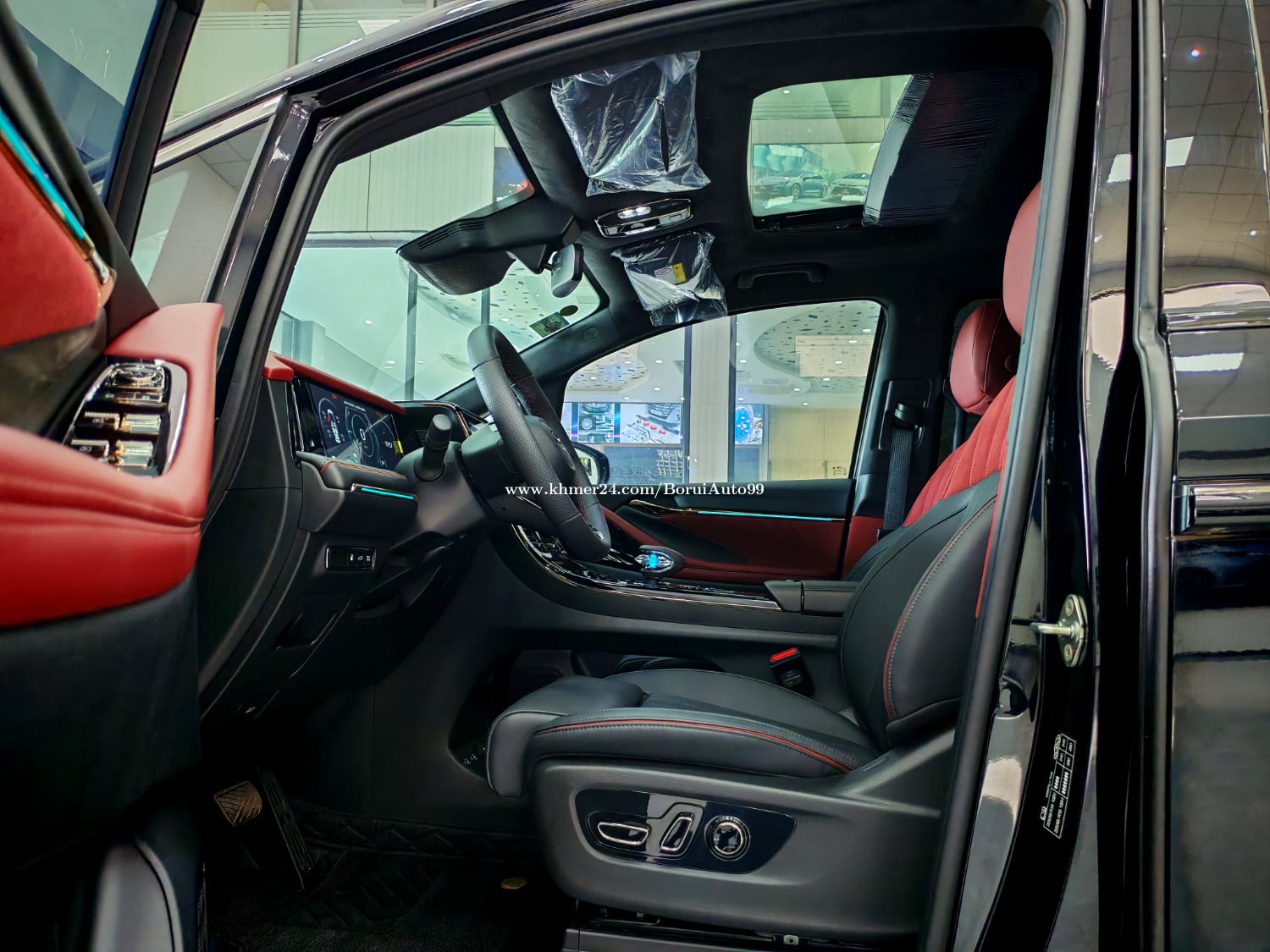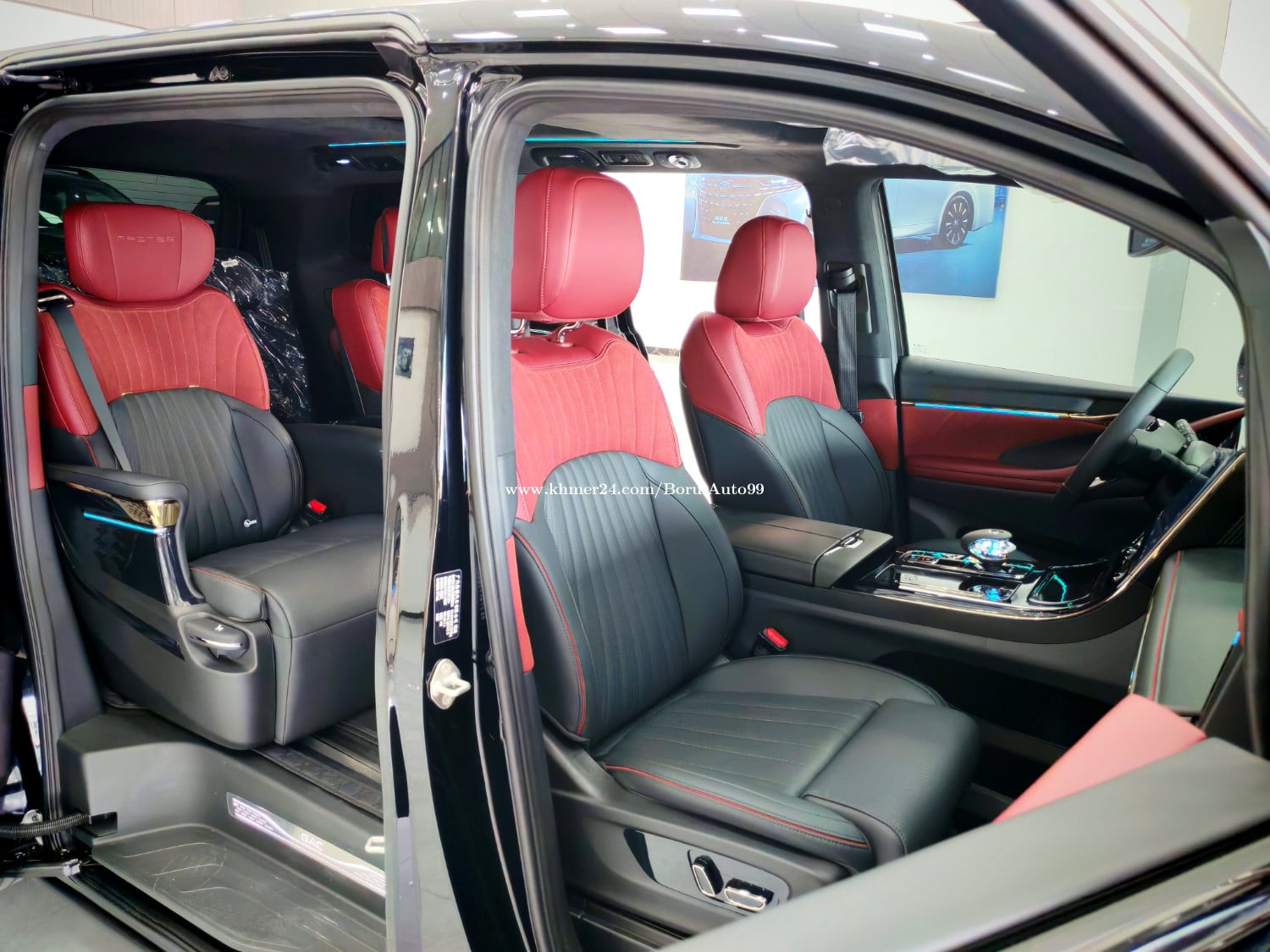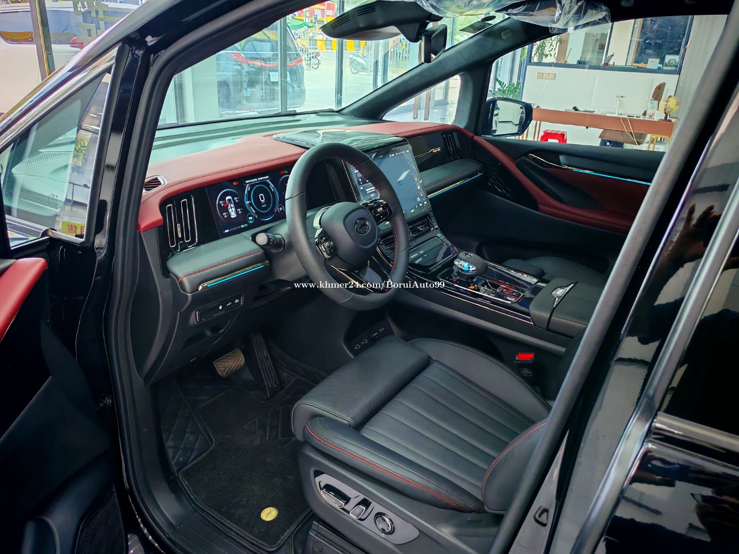 👉 Type & Seating: Luxury 7-seater MPV (2+2+3 configuration). 👉 Powertrain: 2.0L Turbo Engine 👉 Infotainment: 12.3-inch Digital Instrument Cluster & 14.6-inch Infotainment Touchscreen, Apple CarPlay / Android Auto, Voice Control. 👉Sky and Light: Features a large Panoramic Sunroof and multi-color Ambient Lighting. 👉 •កៅអីម៉ាស្ស៉ា ស្ប៉ា ក្តៅត្រជាក់4កៅអី