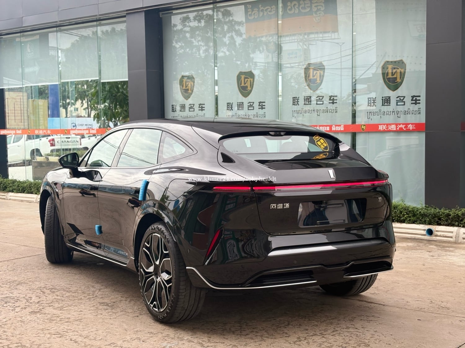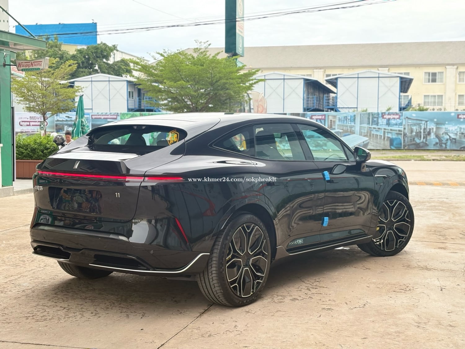 2025 AVATR 11 Ultra 4WD 760KM កំលាំងសេះសរុប 电动机总马力:547 Ps កំលាំងរមួលសរុប 电动机总扭矩:687 N•m កំលាំងម៉ូទ័រមុខ 前电机最大马力: 225 Ps កំលាំងរមួលម៉ូទ័រមុខ 前电机最大扭矩: 291 N•m កំលាំងម៉ូទ័ក្រោយ 后电机最大马力:322 Ps កំលាំងរមួលម៉ូទ័រក្រោយ 后电机最大扭矩:396 N•m សន្ទុះពីល្បឿន0-100 0—100km/h:3.9s ល្បឿនអតិបរមា 最高车速:200 km/h រត់បានរយ:ចំងាយ CLTC纯电续航:760 km ទំហំអាគុយ 电池容量:116.79 kWh ស៊ីភ្លេីងក្នុង100km 百公里耗电量:16.7 kWh/100km រយះពេលសាកលឿន 快充时间:0.42 小时 រយះពេលសាកយឺត 慢充时间:13.5 小时 ខ្នាតរថយន្ត 尺寸:4895×1970×1601mm ធ្វេីចលនាដោយប៉ុងពីរ 驱动方式:四驱 ធានា 质保:5 ឆ្នាំ年或12ម៉ឺនគីឡូម៉ែត万公里