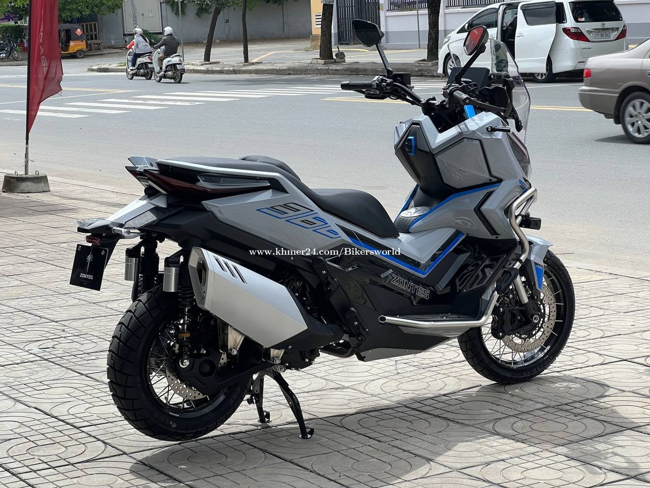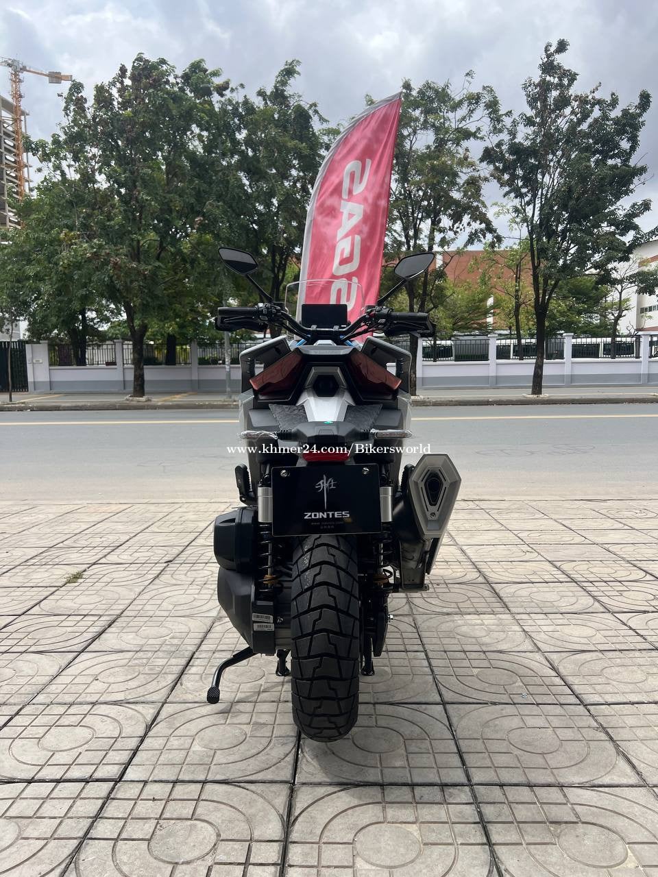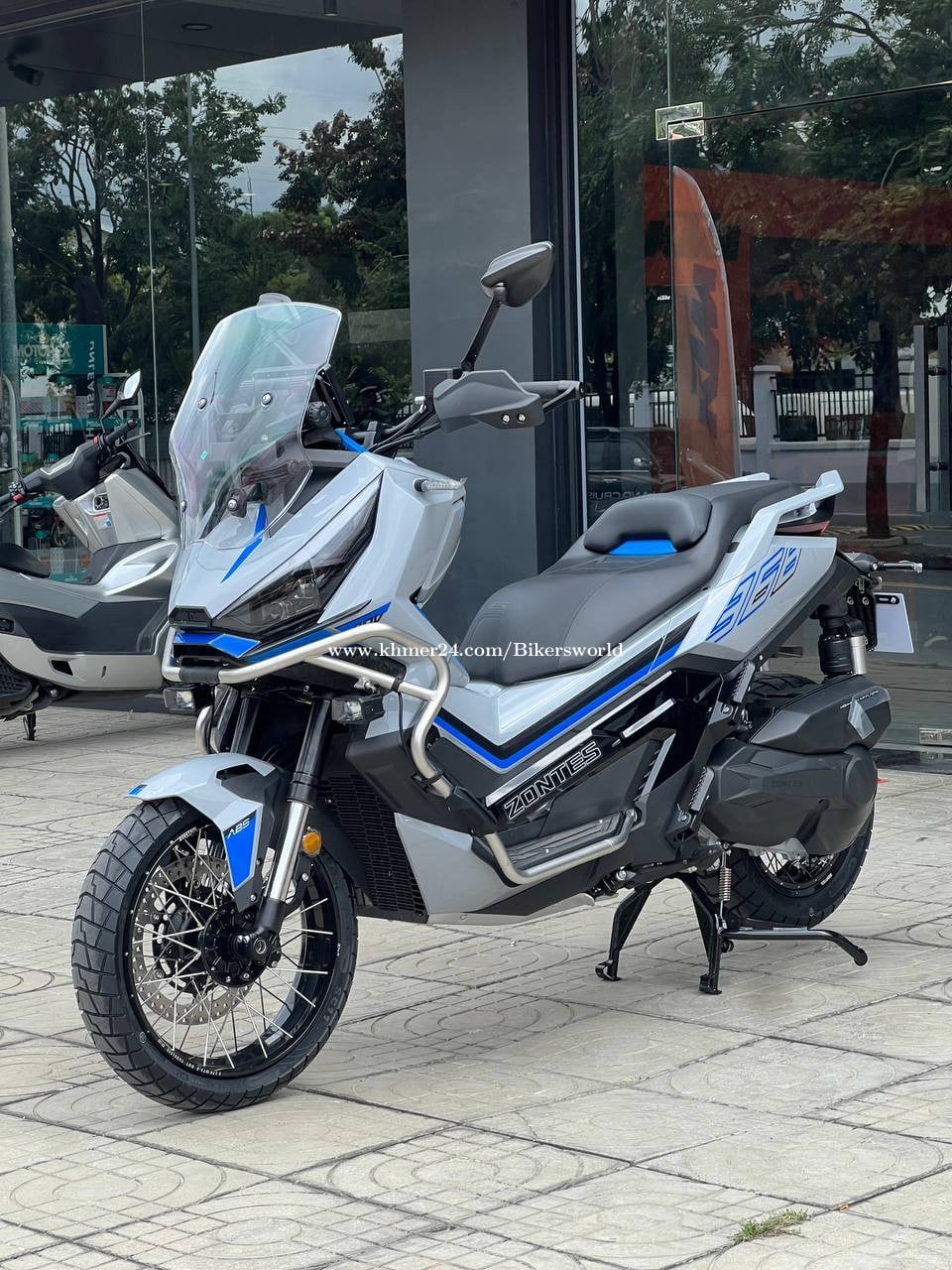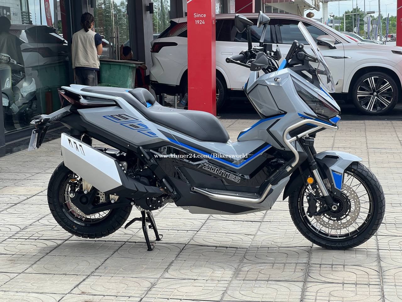 SPECIFICATIONS LENGTH : 2,230 mm WIDTH : 925 mm HEIGHT : 1,290 mm WHEEL BASE : 1,565 mm GROUND CLEARANCE : 180 / 155 mm SEAT HEIGHT : 795 / 770 mm DRY WEIGHT : 198 kg FUEL TANK VOLUME : 17.5 L FUEL CONSUMPTION : 3.5 L / 100 km FRONT RIM SIZE MT : 3.0 x 17 REAR RIM SIZE MT : 4.25 x 14 ENGINE TYPE : Single-cylinder, Horizontal, Four-stroke, water-cooling CYLINDER NUMBER : 1 CYLINDER BORE : 79 mm STROKE : 75 mm DISPLACEMENT : 368 cc COMPRESSION RATIO : 11.8:1 START-UP MODE : Electric Starting LUBRICATING SYSTEM : Spanish lubrication plus pressure lubrication POWER : 28.5kW MAXIMUM TORQUE : 40 Nm TRANSMISSION SYSTEM CLUTCH : Dry, automatic, eccentricity TRANSMISSION : CVT DRIVE FORM : Belt Functional > 17-inch Spoked Wheel > ZONTES Intelligent APP > 3.0 Keyless Control System > 8-inch TFT LCD Screen Display > Bluetooth Mirror Screen Sharing > Type-C charging port (x3) > Handle Grip Heater > Enlarged Fuel Tank Capacity > Adjustable Integrated Aluminium Alloy Steering Handle > 52L Storage Space > Large Seat Storage fits 2 helmets > S/E dual power mode > Electric fuel tank cap > Mid-stand (forged pedals) SAFETY > Spanish J.Juan Four Piston Radial Caliper > Dual-Channel ABS System > Upside-Down adjustable Shock Absorber > TCS System > Tyre Pressure Monitoring System > Chassis Guard (standard) > AUTO high brightness LED cruise headlights > Front/Rear Dual HD Driving Recorder > Original Fog Lights (standard) > Original Bumper (standard)