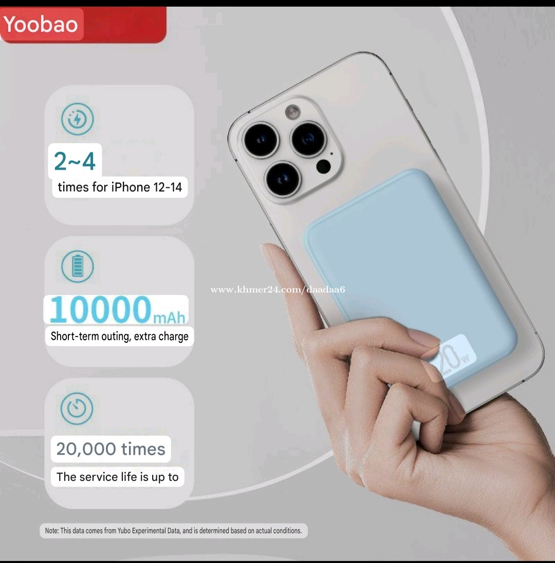 20W Magnetic Power Bank Apple Fast Charge MagSafe Ultra-thin Compatible with iPhone 17/16/14/13 brand: yoobao 羽博 name: Yoobao-M02 Magnetic 20W Power Bank model: M02 capacity: 10000mAh Type-C Input/Output: 5V-3A/9V-2.23A (PD20W) Product weight: 190g Product size: 100*65*20 Wireless output: 5W/10W/15W