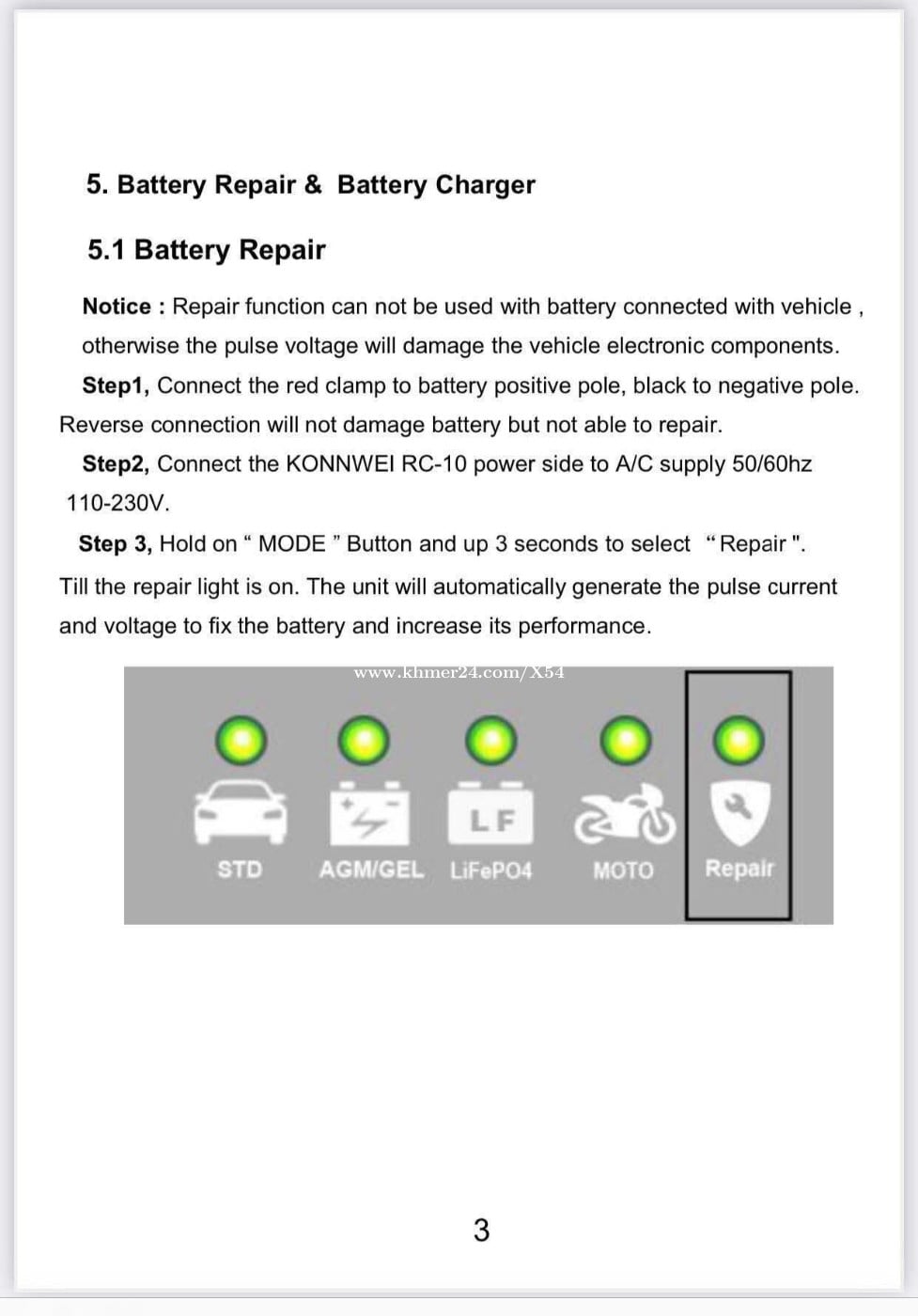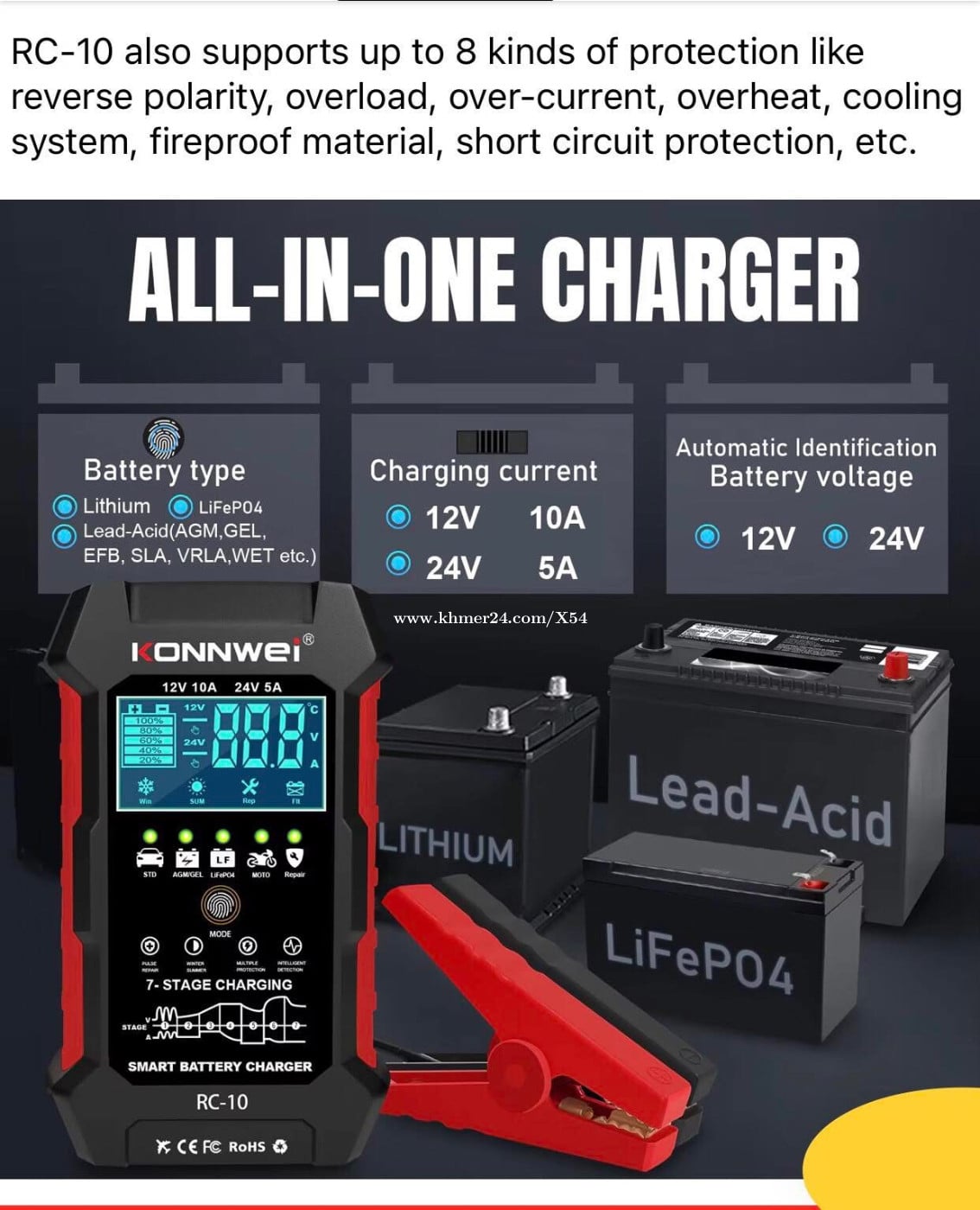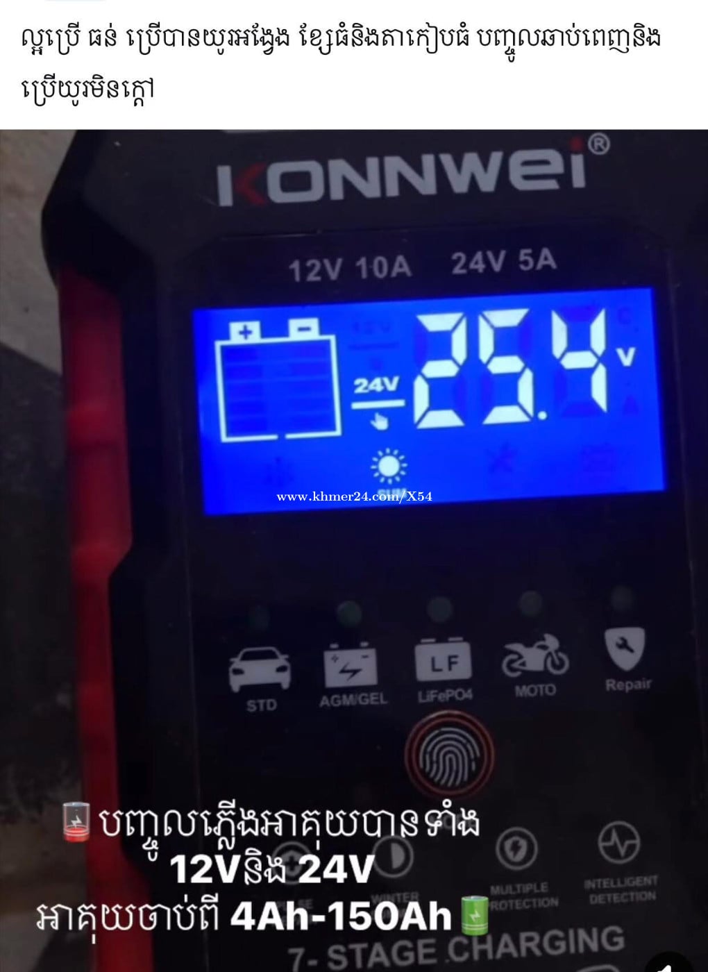 21$(បញ្ចុះពី 35$): ឧបករណ៍បញ្ចូលភ្លើងអាគុយទាំងស្ងួតនិងអាគុយទឹក និងជុសជុលអាគុយ វៃឆ្លាតបច្ចេកវិទ្យាចុងក្រោយ បញ្ចូលភ្លើងអាគុយចូលលឿននិងឆាប់ពេញមានដូចជាៈ 👉បញ្ចូលភ្លើងអាគុយ ប្រើបានទាំង 12 វ៉ុលនិង 24 វ៉ុល(V) ចាប់ពីអាគុយ 4 អាំពែដល់ 150 អាំពែ(AH) 🚍អាគុយឡាន 🛺🏍️ អាគុយម៉ូតូ 🛵🛴អាគុយកង់ ម៉ូតូអគ្គីសនីនិងអាគុយសូឡា 🪫 អាគុយលីចូម (Lithium battery) 🔋និងបញ្ជូលភ្លើងបានគ្រប់ប្រភេទអាគុយទាំងអស់ 👉អាចជុសជុលនិងតំហែទាំអាគុយបាន ចាប់ពី 30 អាំពែឡើងទៅដល់ 220 អាំពែ(AH) 🔌 ដោតប្រើជាមួយភ្លើងរដ្ឋធម្មតា, ចាប់ខុសប៉ូលអាគុយក៏មិនមានបញ្ហា 💡ងាយស្រួលប្រើ ល្អប្រើ ធន់និងបានយូរអង្វែង 🔋ពេលបញ្ចូលអាគុយពេញ វាលឺសំលេងរំលឹកបីបៗ បន្ទាប់មកបិតអូតូ 🔌ទំងន់ម៉ាស៉ីន 0.75 គីឡូក្រាម តាកៀបចាប់ក្បាលបូកដកធំមាំ ខ្សែដោតព្រីភ្លើងស្តង់ដាប្រវែង 1.5 ម៉ែត្រ ខ្សែចាប់ប៉ូលភ្លើងបូកដកធំប្រវែង 0.8 ម៉ែត្រ និងទំហំម៉ាស៉ីនៈបណ្តោយប្រវែង 0.15 ម៉ែត្រ ទទឹងប្រវែង 0.09 ម៉ែត្រ កំពស់ប្រវែង 0.06 ម៉ែត្រ និងមានកង្ហាប្រើយូរម៉ោងមិនឆាប់ក្តៅ 💰អាចបង់លុយបាន ពេលទទួលបានឥវ៉ាន់ 🚀 សេវាដឹក $2 - ទំនាក់ទំនងតាម តេលេក្រាម 098669xxxClick To Call - ទូរស័ព្ទ 098669xxxClick To Call/077879xxxClick To Call/0979897xxxClick To Call