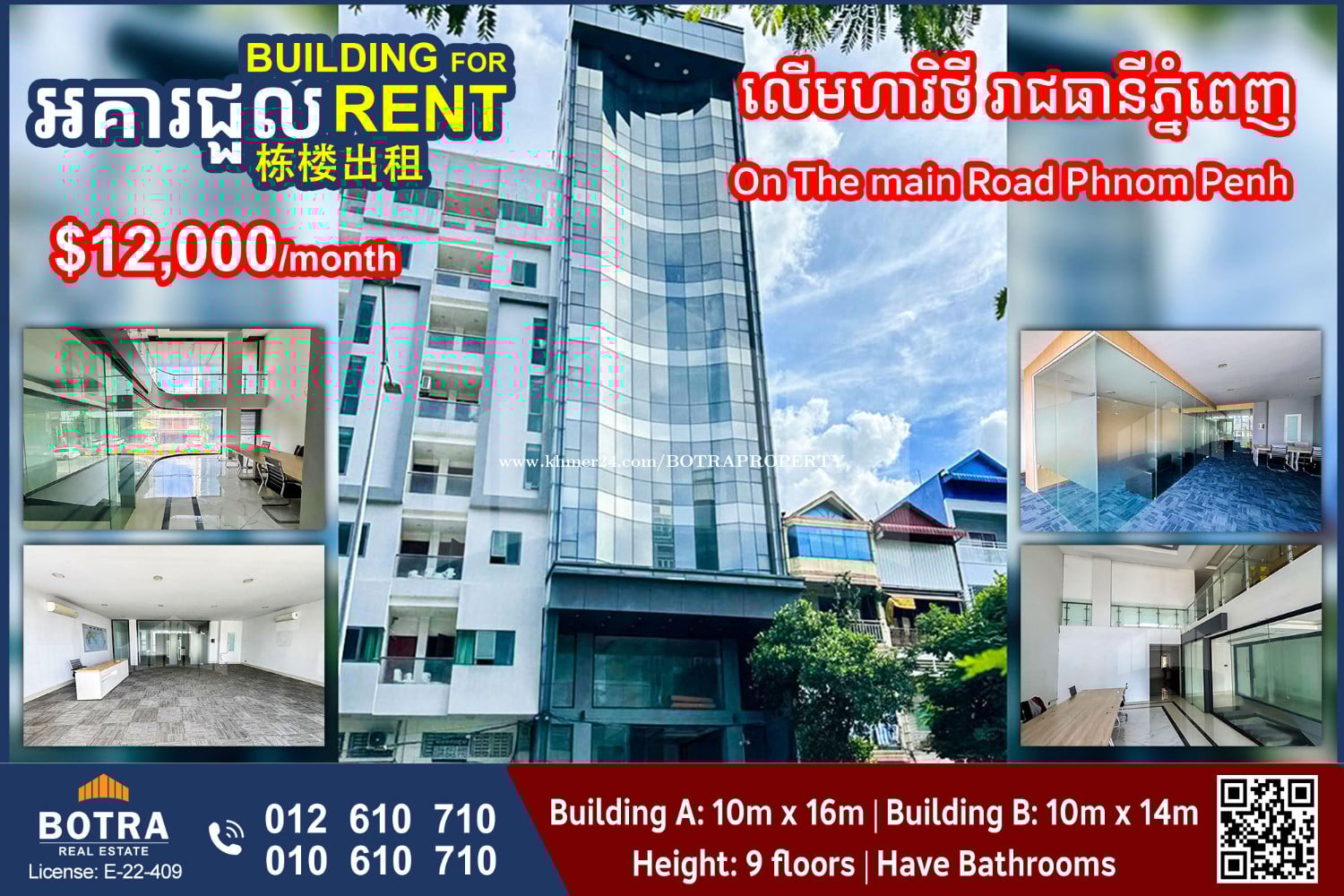๐ฃ 2Buildings for Rent #BP1342 ๐ On the main road Phnom Penh - Price: $12,000/month (negotiable) 1. Front building: - Building size: 10m x 16m 2. Back building: - Building size: 10m x 14m - Height: 9 floors - Each floor has 2 bathrooms - Parking on the ground floor โโโโโโโโโ Contact us now ๐ 012610xxxClick To Call (Cellcard) ๐ 010610xxxClick To Call (Smart) โถ๏ธ t.me/BotraRealEstate (Chat)