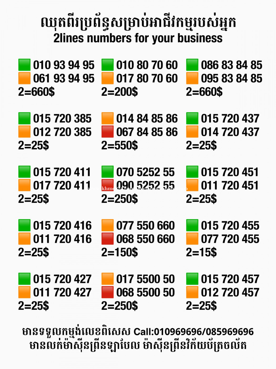 មានលក់លេខពិសេស មានទទួលកម្មង់លេខពិសេស មានលក់ម៉ាស៊ីនព្រីនឡាបែលចល័ត មានលក់ម៉ាស៊ីនព្រីនវិក័យប័ត្រចល័ត មានលក់សម្ភារៈប្រើប្រាស់ក្នុងគ្រួសារ Smart Prime II 1=30$ Smart hero 1=40$ ទូរសព្ទថ្មីក្នុងប្រអប់ លក់ធូរៗរហូតអស់ពីស្តុក អាចប្រើជាឧបករណ៍សម្រាប់ស៊ែរ wifi បាន ទំនាក់ទំនង(ខ្មែរ | English | 中文):010969696 | 085969696 Telegram: https://t.me/W9696 Telegram group: https://t.me/konkonnada អាសយដ្ឋាន:ផ្ទះលេខ២៣ ផ្លូវបេតុងលេខ១ ភូមិទួលពង្រ សង្កាត់ចោមចៅ ខណ្ឌពោធិ៍សែនជ័យ រាជធានីភ្នំពេញ ទីតាំង https://goo.gl/maps/8moqW4iTHUfJEvWQ9 ដើម្បីស្វែងរកលេខអាជីវកម្មដែលលោកអ្នកពេញចិត្ត សូមចូលទៅកាន់:https://www.khmer24.com/Welcome-onlineshop