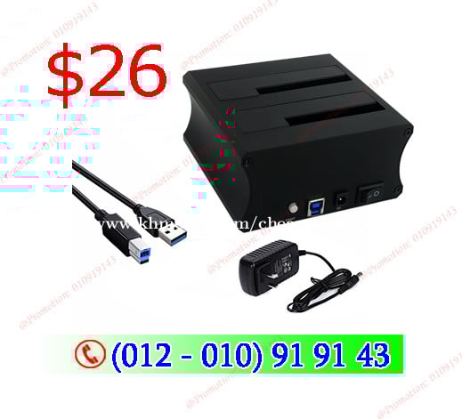 Just arrival New 2 ports HDD Offline Clone Dock USB 3.0 for Hard disk Desktop 3.5" /HDD Laptop 2.5" or SSD - Offline HDD Clone from Drive 1 to Drive 2 - Can use 2 Hard disks ( HDD Desktop 3.5" or HDD Laptop 2.5" or SSD) at the same time in computer. ⭐️** Normal Price $30 ⭐️=>Promotion Price: $26 ***#: 24-0423 **ទំនិញមានក្នុងស្តុក 👉សំរាប់ការកម្មង់ទិញ ឬ ពត៍មានបន្ថែម សូម CALL ទាក់ទងលេខខាងក្រោម៖ ------------------------------------------------- ☎️ H/P: 010919xxxClick To Call | 012919xxxClick To Call ------------------------------------------------- Welcome! Retail and Dealers -We care on Quality | Trustworthy | Reasonable Price -We also offer wholesale, Retail and Repair (Hardware Software) all kinds of new & used computers, Laptops, spare-parts. => New SSD * SSD 120GB : $21 * SSD 256GB: $37 * SSD 512GB: $55 **RAM =>Desktop - DDR2 2GB $10 - DDR3 4GB: $16 - DDR3 8GB:$22 - DDR4 8GB:$37 =>Laptop - DDR3 RAM (2GB): $5, - DDR3 4GB: $16 - DDR3 8GB: $ 20 - DDR4 8GB: $ 39