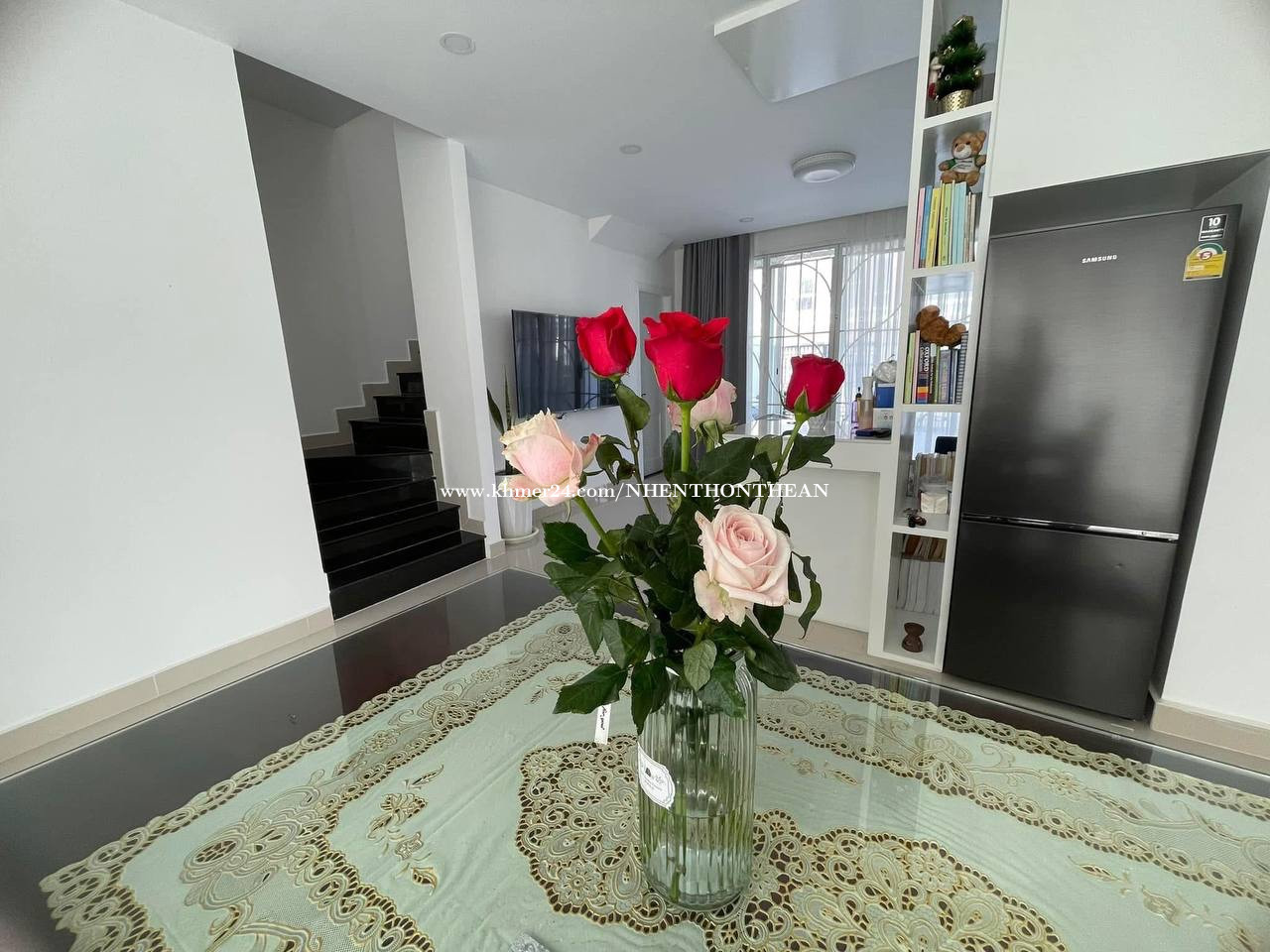3-bedroom villa for rent located in Chhroy Changva. The villa has 3 bedrooms, 2 bathrooms, 1 toilet, 1 living room and 1 kitchen. The villa is fully equipped and ready to move in. ๐ฐ Rental Price: USD 650 month included annual maintenance fee. It is very good for living and office safe area no flooding.