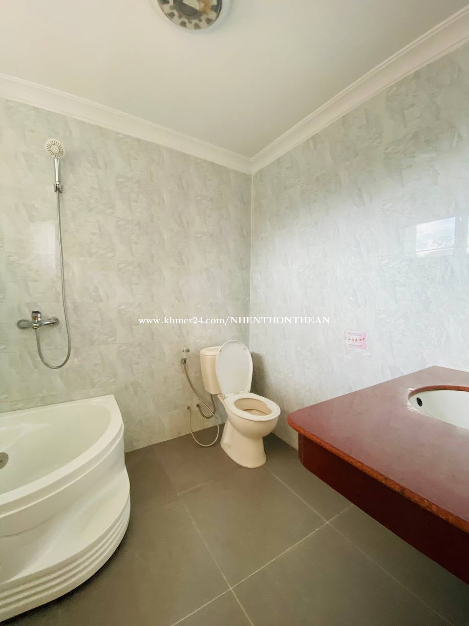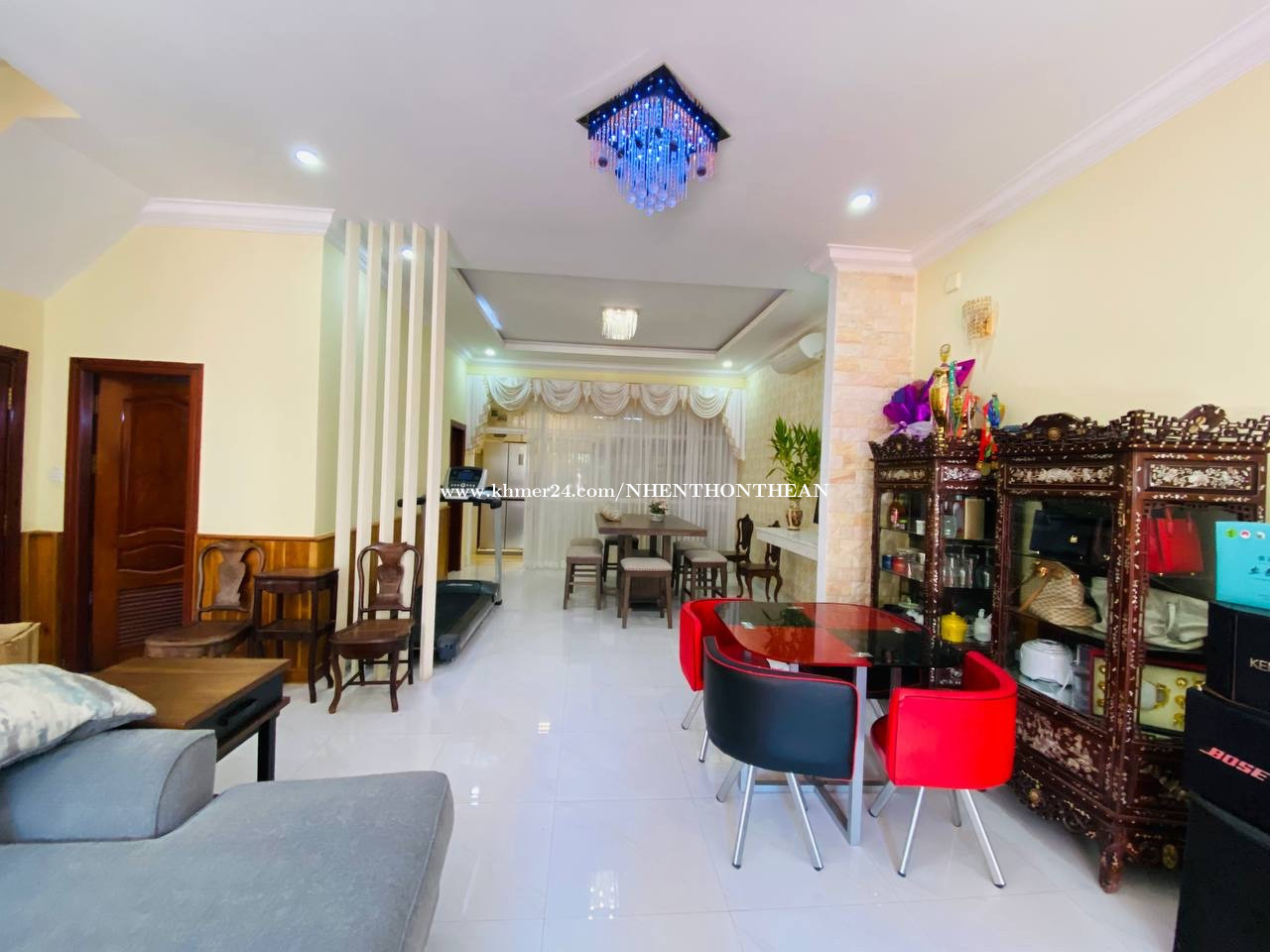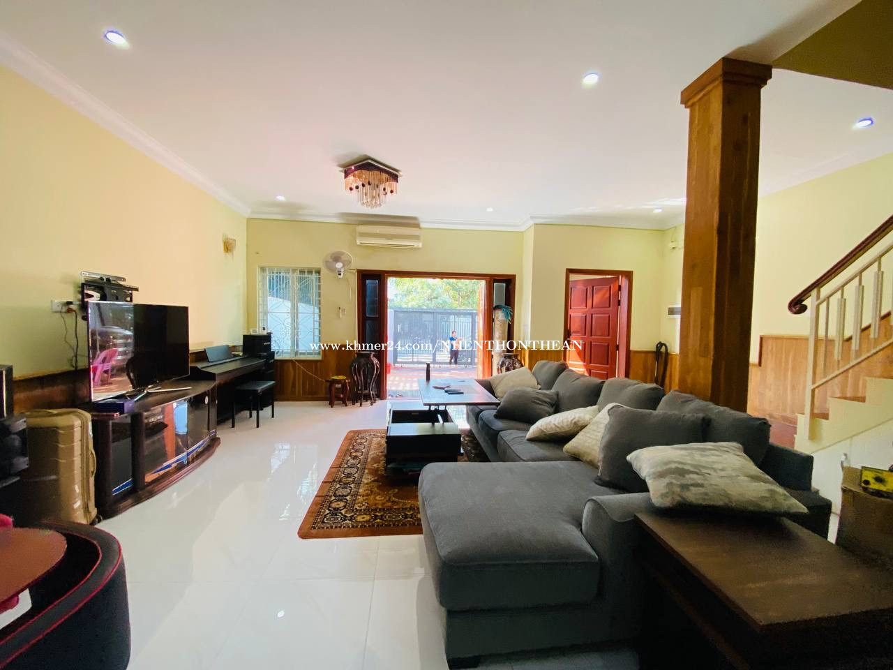 House For Rent in Bassac Garden City Price: $1500 per month Bedroom:03 plus 1 maid room Bathroom:04 Furniture: some Parking: 2 cars It is very good for living and office safe area no flooding.