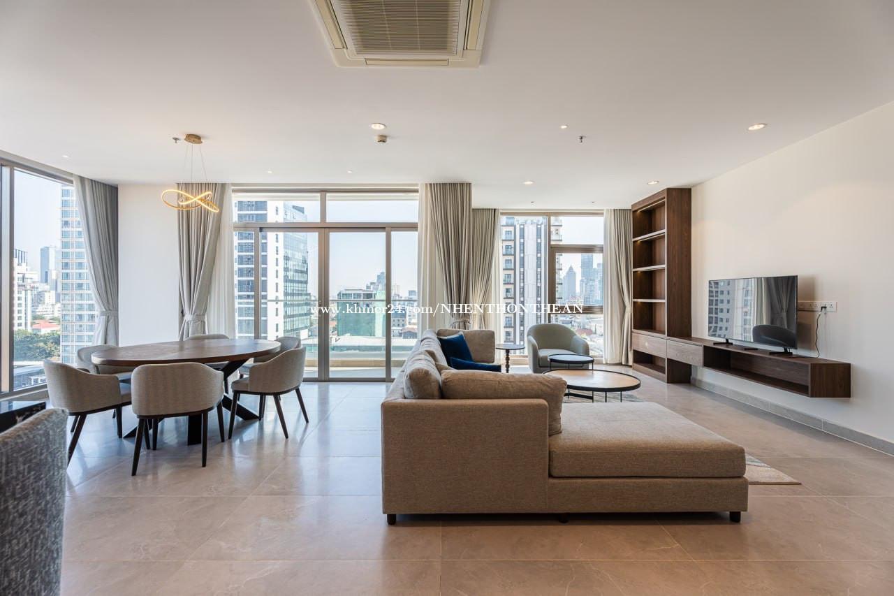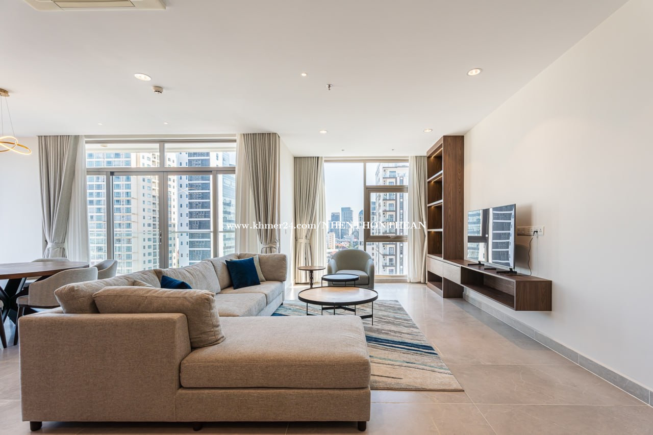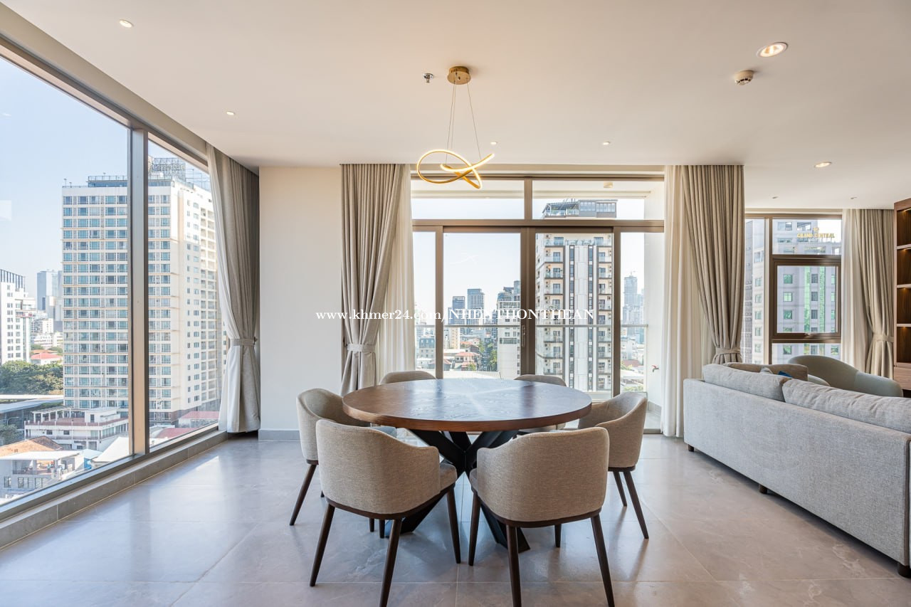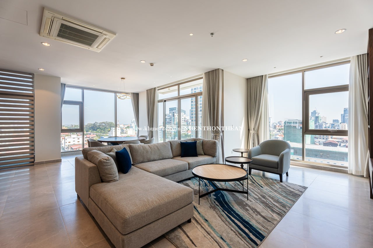 Service Apartment For Rent in Doun Penh Price: $3500 per month Bedroom:03 Bathroom:03 Furniture: fully furnished Have swimming pool and gym, parking, cable tv, WiFi, cleaning.