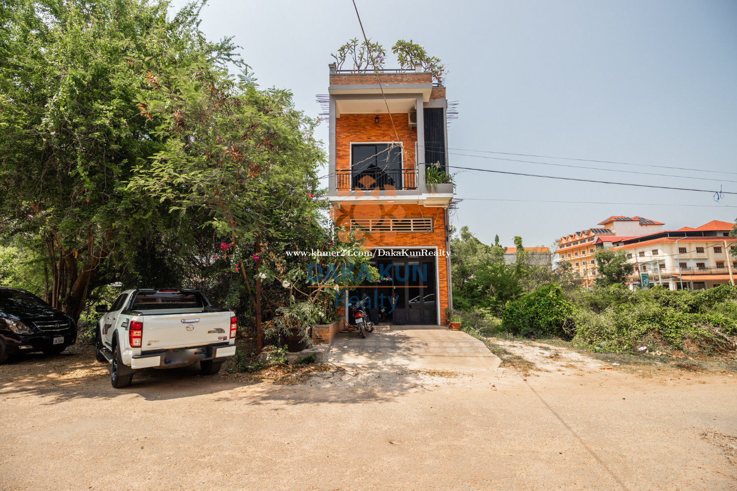 Contact Daka Kun Realty at 089899xxxClick To Call/012390xxxClick To Call ( WhatsApp & Telegram) or Email: inq****@dakakunrealty.comClick To Sent Email Property ID: DV1489 Rental Price: USD 300 per month • Land size: 4m x 25m • House size: 4m x 20m • 3 Bedrooms and 4 Bathrooms • Living room and Kitchen • Semi-furnished • Balcony and Rooftop terrace • Parking Space • Location: Sangkat Sla Kram, Krong Siem Reap —---------------------------------------------------------------------------- More option: www.dakakunrealty.com Telegram channel ---> https://t.me/dakakunrealty Real Estate Agent: Yeun Sam Ath Nr: R-21-381-01