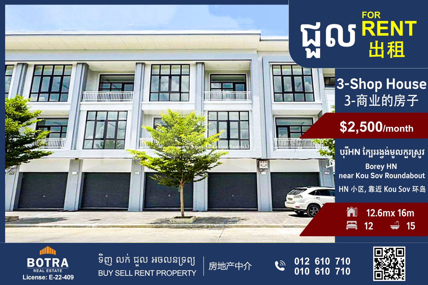 ๐ก 3-Shop House for Rent #SN0470 ๐ Borey HN near Kou Sov Roundabout - Price: $2,000/month - House size: 12.6mx 16m - Bedrooms: 12 | Bathrooms: 15 - Inconnected House โโโโโโโโโ Contact us now ๐ 012610xxxClick To Call (Cellcard) ๐ 010610xxxClick To Call (Smart) โถ๏ธ t.me/BotraRealEstate (Chat)