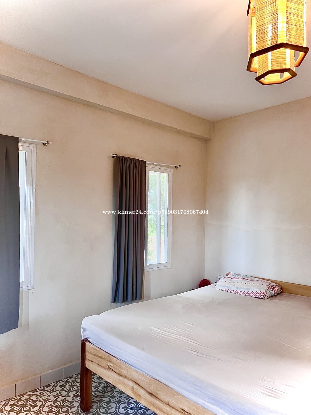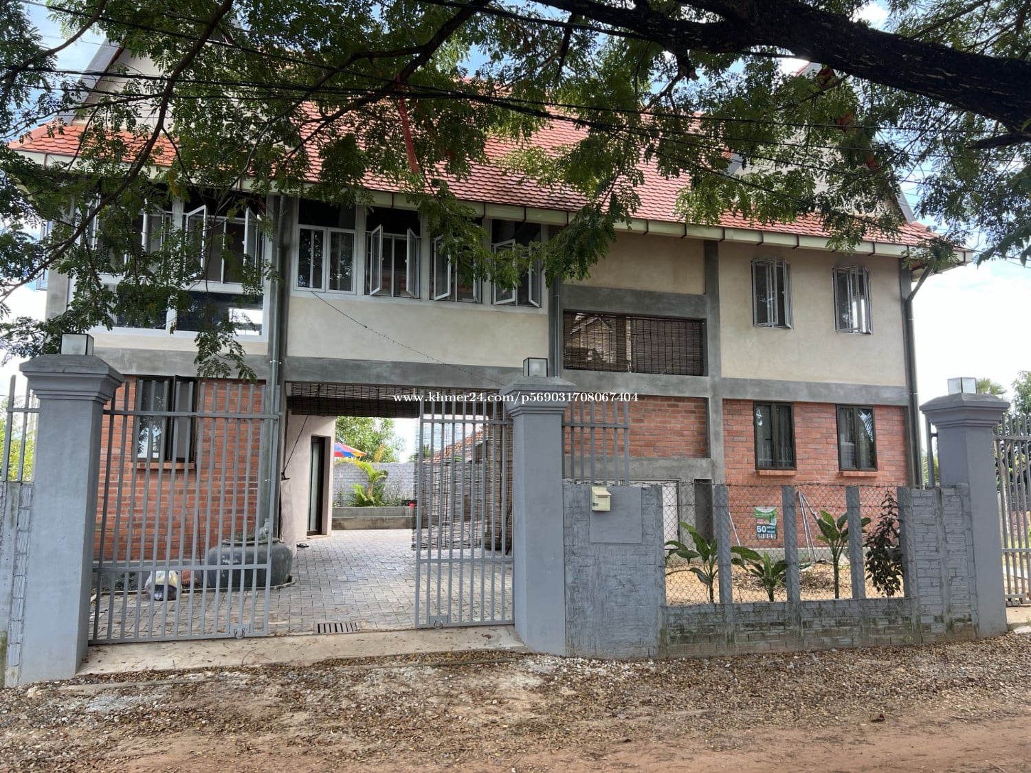 Two very special houses for a family, as a residence for Western expats or for a beauty treatment studio. Please note that the rooms are not of the normal size for Cambodia. This is not the kind of house that Cambodians usually like. But it has many unusual possibilities. The area has 3 big doors (4 Meters) to the streets. 2 to the western street and 1 to the northern street. Many natural materials were used in the construction: clay tiles for the roofs, walls with natural plaster without acrylic paint, etc. Owner Area in the first floor: big veranda sitting-dining-room with kitchen and small balcony. 1 bedroom for a double bed with own bathroom and small closet room. Aircon. 1 small bedroom with own shower-WC-Labo. Aircon. 1 very small single room with shower and WC with labo. Aircon. Ground floor: Small room for ironing and sewing. Office room. A room that can be used for various purpose. Garage for motorcycles and bicycles. A space for a washing machine. A shower with toilet for pool users. Labo. A private, secluded courtyard measuring over 150 m² with a swimming pool (3 x 6 metres) and barbecue. Access under the house from the western road. You can drive in by mototcycle, bike or a small car. A completely separate small flat on the ground floor with a small kitchen, walk-in wardrobe, warm shower, toilet and washbasin. Aircon. This has its own separate entrance from the street at the western side. A fully equipped garden house with its own bathroom with toilet, warm shower, pissoir, and washbasin. Bedroom with aircon. A terrace with outdoor kitchen. This veranda can easily be glazed and also equipped with air conditioning. It also has its own access to the northern road with a large gate. Extensions can be added without any problems. There is enoiugh space. Own water supply with well, pump, booster pump and tank under the roof. All aircons hidden under the roof. Two septic tanks. Professional lightning conductor. All roofs have a rain gutter system with 13 large traditional tanks in the garden for rainwater. Totaly 6,000 Liters capacaty. A drainage system down under the earth for heavy rainfalls in the whole land. This bring the water out to the ricefields. A 5 kW-solar-system with 8 panels and a 15 kW battery. The residents have always taken personal care of the house owners and maintained it over the past few years. The owners find the property now too large, so they want to sell it iin the first half of the year 2026, to build a smaller one nearby. An other possibillity is that you buy only the smaler part with the garden house or the bigger part with the big house separately. If the conditions fit, we are flexible.
