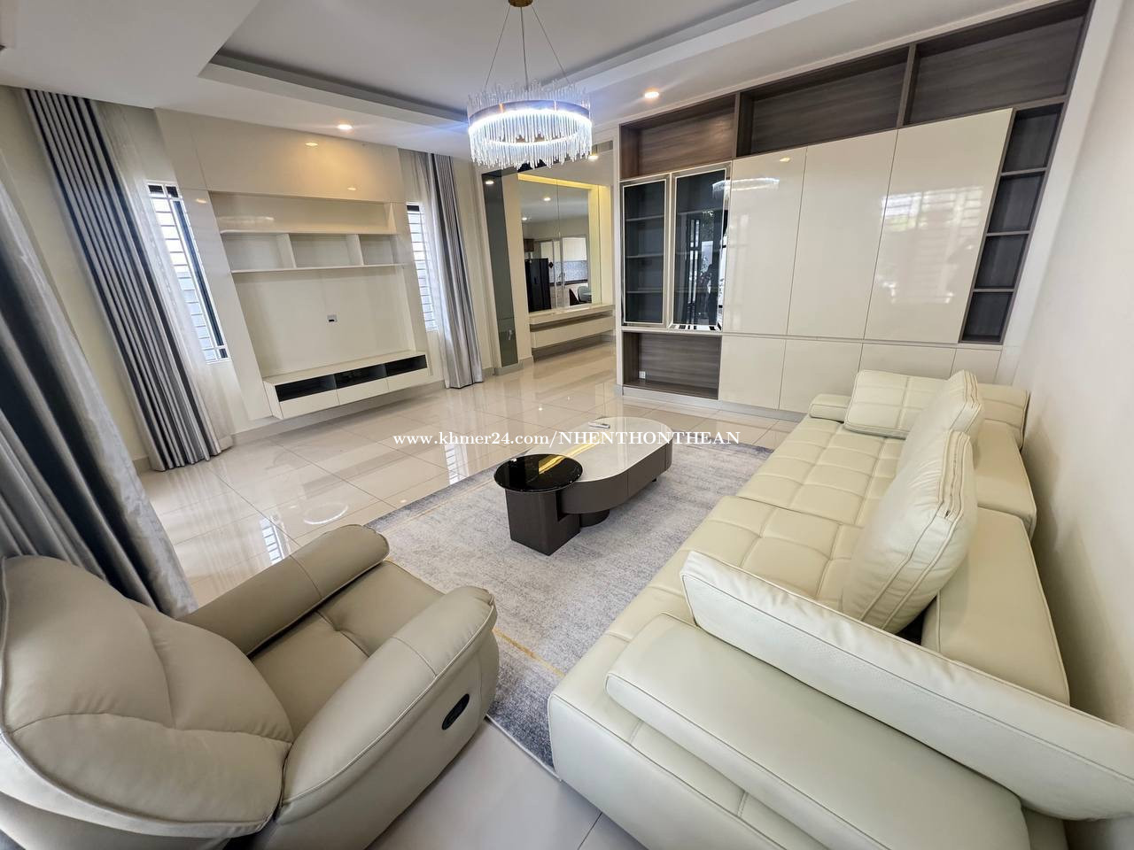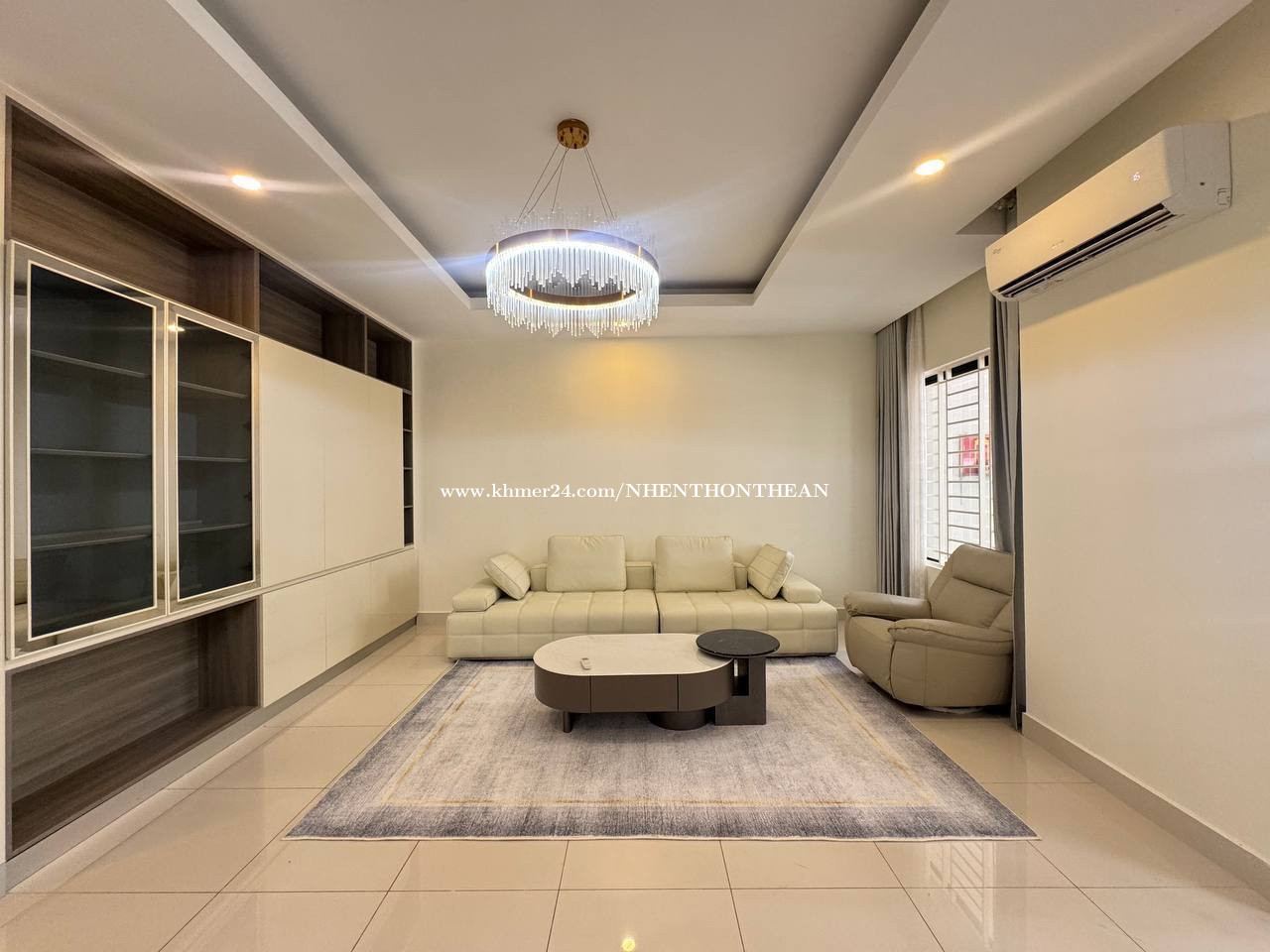 Twin House 4 Bedrooms For Rent At Peng Hout Beoung Snor. Price: 2500$ per month Bedroom:04 Bathroom:05 Furniture: fully furnished It is very good for living and office safe area no flooding.