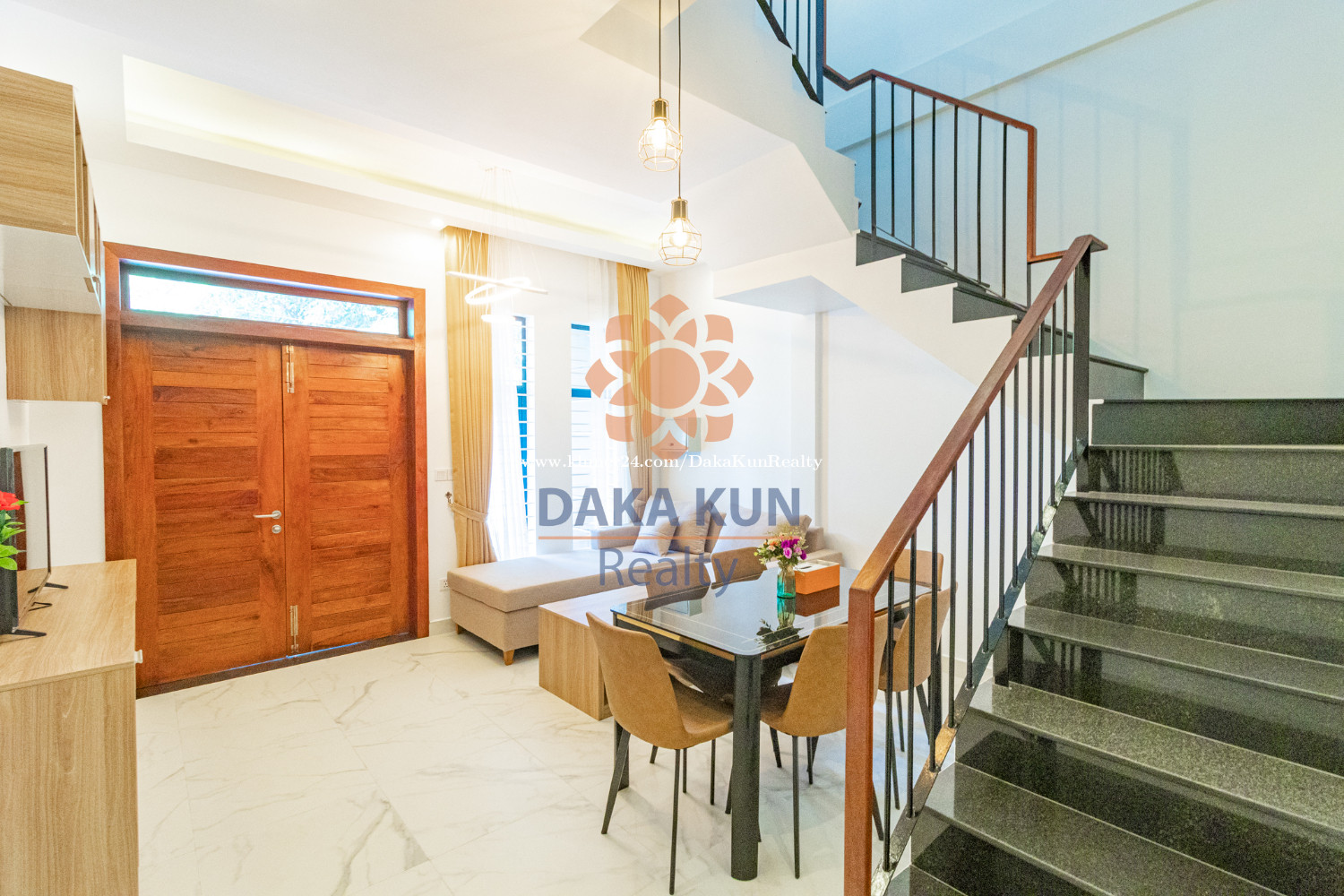 Contact Daka Kun Realty at 089899xxxClick To Call/012390xxxClick To Call ( WhatsApp & Telegram) or Email: inq****@dakakunrealty.comClick To Sent Email Property ID: DV1651 Rental Price: USD 600 Per month • Land Size: 5m x 18m (90 sqm) • House Size: 5m x 12m • 4 Bedrooms and 4 Bathrooms • Living Area and Kitchen • Fully Furnished • Parking Space • Located 2km from Old Market, in Sangkat Sala Kamreuk, Siem Reap City —---------------------------------------------------------------------------- More option: www.dakakunrealty.com Telegram channel ---> https://t.me/dakakunrealty Real Estate Agent: Yeun Sam Ath Nr: R-21-381-01