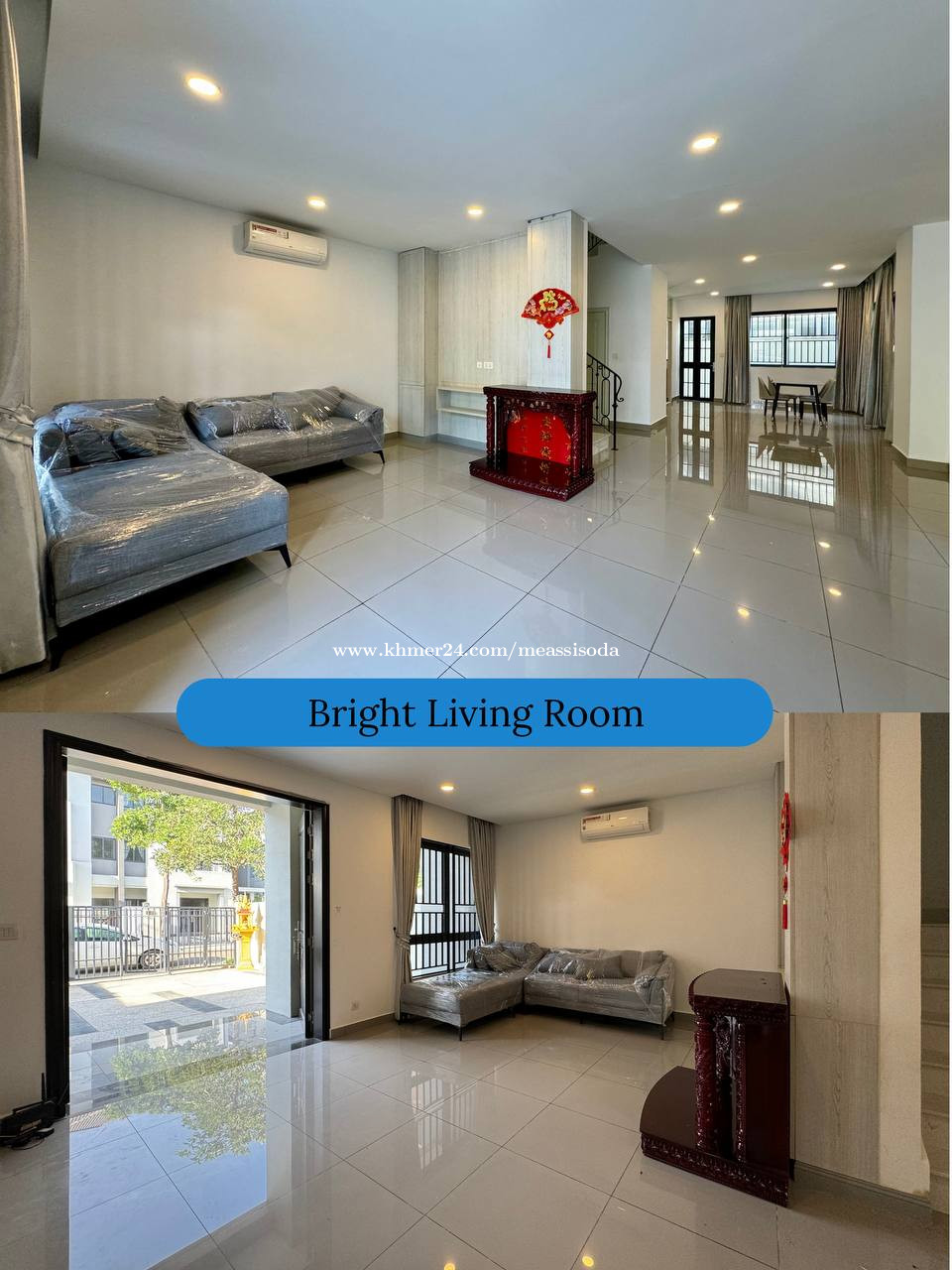 4 bedrooms Twin Villa for only (1,500$ negotiable) located at Chip Mong 60m ✅ Brand new sofa, beds, mattresses, refrigerator & dining table ✅ 4 Bedrooms | 5 Bathrooms ✅ 4 Car Parking Spaces ✅ 5 Air Conditioners Installed ✅ Modern Kitchen with Cooking Hood ✨ Stylish, spacious, and move-in ready! Great location, ready to move in! (ID: PPT40) 📞 Contact now to view! Telegram: https://t.me/SisodaRealEstate WhatsApp: https://wa.me/85512762847 Modern 4BR furnished twin villa in a secure gated community, 8 minutes’ walk to AEON Mean Chey. Close to schools, malls, gym, and pool — perfect family living!