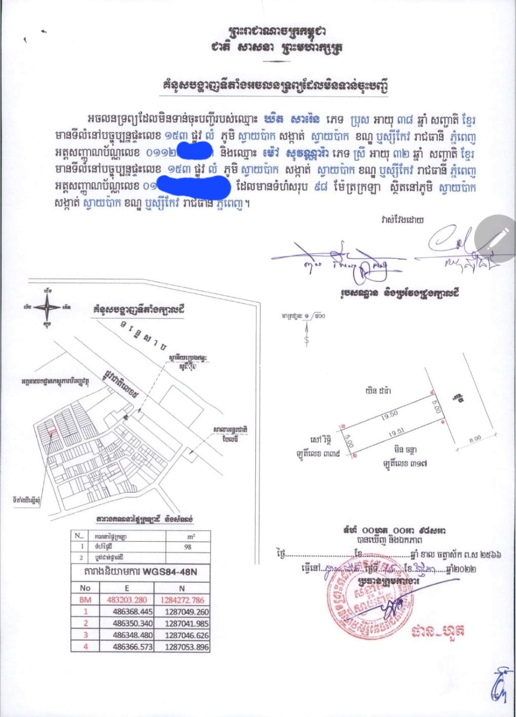 មានដីសម្រាប់លក់ ទំហំ 5*19.51 តម្លៃ 45,000$ - ផ្លូវទំហំ 8ម - ក្បែរផ្លូវជាតិ៥ ចូលទៅប្រហែល 100មដល់ដី - មានផ្លូវប្រជាជនអ៊ូអរ - ចេញប្លង់រឹងជូន - ស្ថិតនៅភូមិស្វាយប៉ាក សង្កាត់ស្វាយប៉ាក ខណ្ឌឫស្សីកែវ ភ្នំពេញ - លេខទូរស័ព្ទ និង telegram 098900xxxClick To Call - ទីតាំងដី https://maps.app.goo.gl/EeHuFmS7fhxFc5YA9