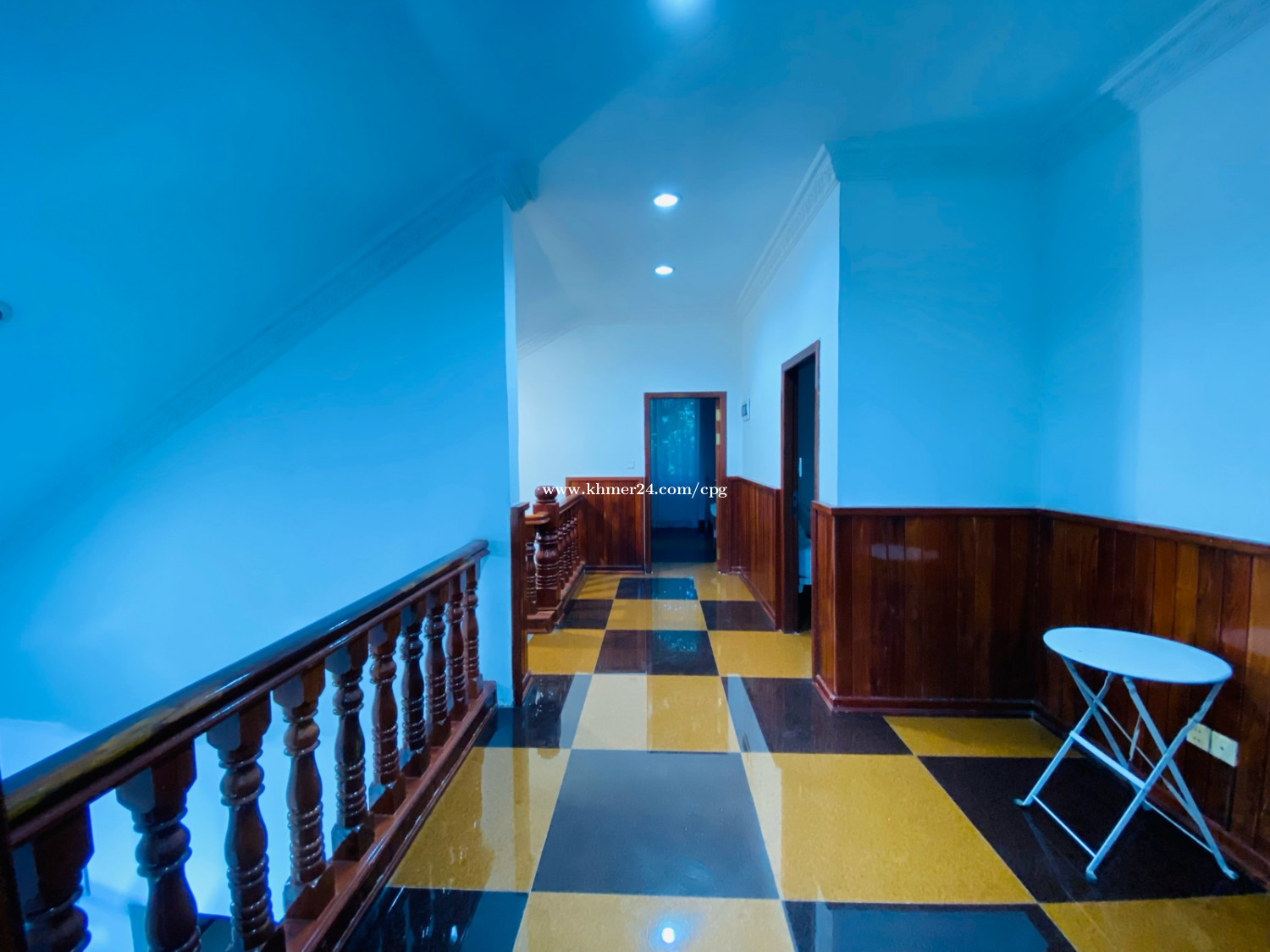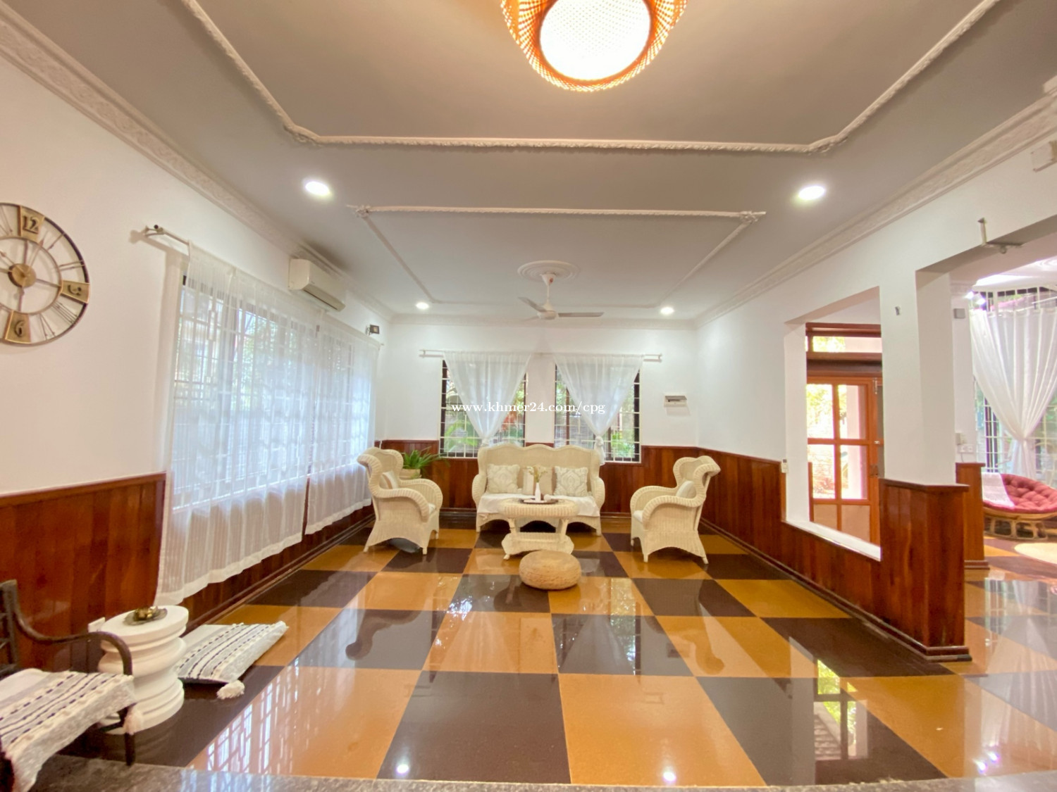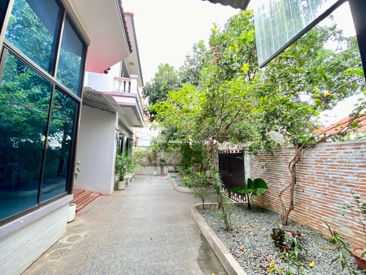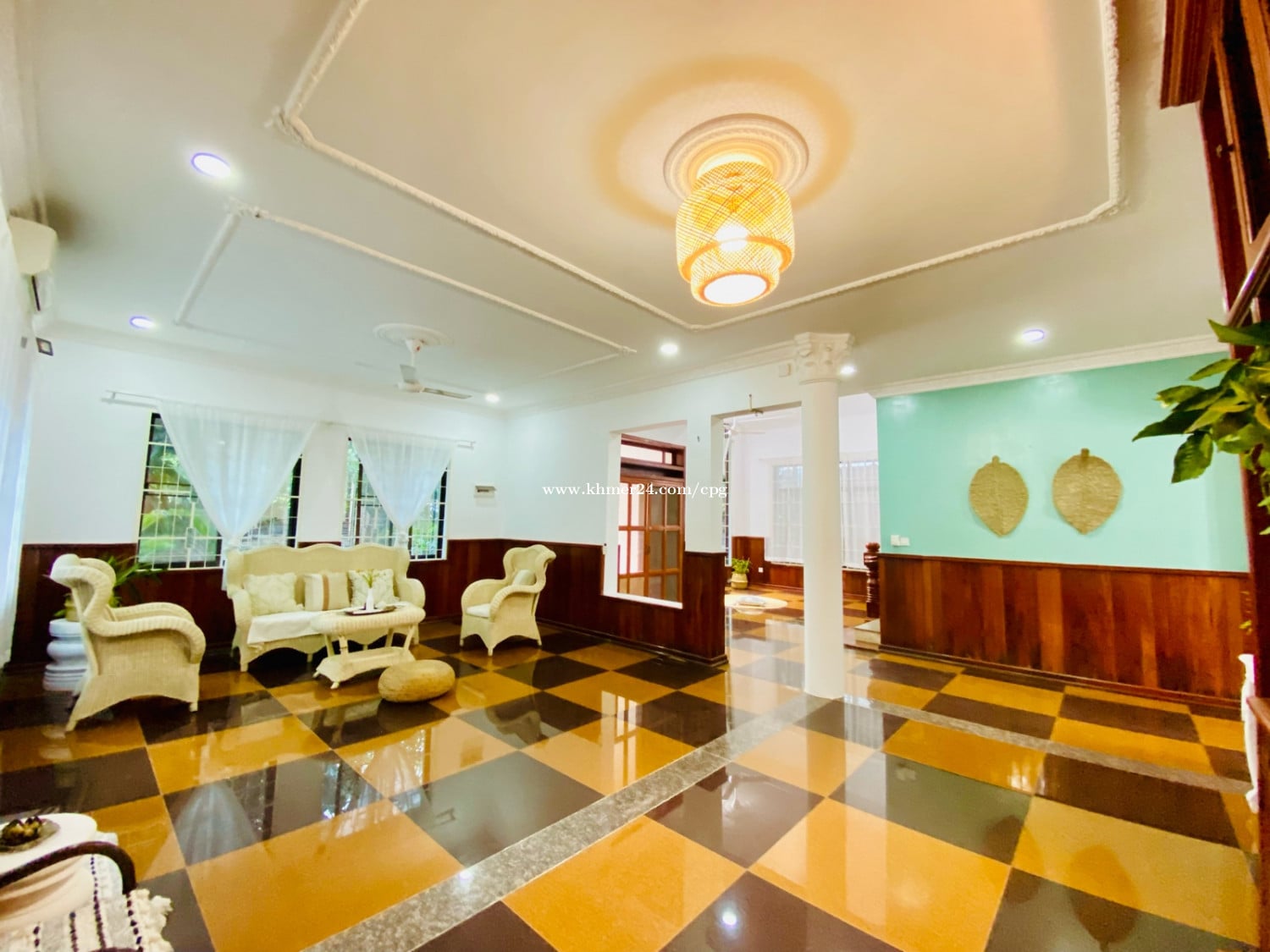 Charming And Beautiful Villa With Wall brick Designed Villa Rent Now. 📍Location: Chroy Changva, 200m from Japanese Bridge, or five minutes from French Embassy. • Rental Price: $1,200 Per Month • Land Size: 15m x 18m • Bedroom: 4 (3Regular+1Master Room with Double Bed) • Bathrooms: 5 (all with hot water) • Floor: Eo (1Room), E1: 3Room) , Separated Kitchen and Living room. • Fully Furnished; Full set of bed, Rattan Safe, Real Wooden Wardrobe, Big Fridge, Washing Machine, A/C, Dish dryer, Microwave, Stovetop. •••All windows are covered by mosquitoes nét.