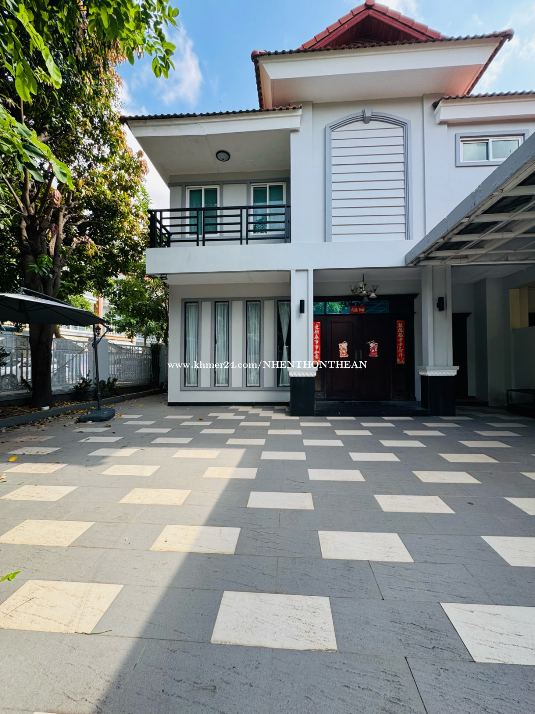 Compound 5 Bedrooms For Rent in Bassac Garden City. Price: $1700 per month Bedroom:04 plus 1 maid room Bathroom:06 Furniture: some Parking around 2 cars It is very good for living and office safe area no flooding.