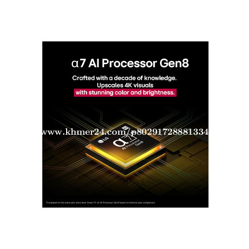 Key Specs Display Type 4K UHD Refresh Rate 60Hz Native Picture Processor α7 AI Processor 4K Gen8 HDR (High Dynamic Range) HDR10 / HLG Audio Output 20W Speaker System 2.0 channel TV Dimensions without Stand (WxHxD, mm) 1455 x 841 x 67.9 TV Weight without Stand (kg) 16.5 Close All Spec PICTURE (DISPLAY) Display Type 4K UHD Display Resolution 4K Ultra HD (3,840 x 2,160) Backlight Type Direct Refresh Rate 60Hz Native PICTURE (PROCESSING) Picture Processor α7 AI Processor 4K Gen8 AI Upscaling 4K Super Upscaling Dynamic Tone Mapping Yes HDR (High Dynamic Range) HDR10 / HLG FILMMAKER MODE™ Yes Picture Mode 10 modes Auto Calibration Yes GAMING HGIG Mode Yes Game Optimizer Yes (Game Dashboard) ALLM (Auto Low Latency Mode) Yes VRR (Variable Refresh Rate) Yes (Up to 60Hz) ACCESSIBILITY High Contrast Yes Gray Scale Yes Invert Colors Yes DIMENSIONS AND WEIGHTS TV Dimensions without Stand (WxHxD, mm) 1455 x 841 x 67.9 TV Dimensions with Stand (WxHxD, mm) 1455 x 904 x 269 Packaging Dimensions (WxHxD, mm) 1580 x 950 x 162 TV Stand (WxD, mm) 1217 x 269 TV Weight without Stand (kg) 16.5 TV Weight with Stand (kg) 16.7 Packaging Weight (kg) 22.4 VESA Mounting (WxH, mm) 300 x 200 AUDIO AI Sound α7 AI Sound Pro (Virtual 9.1.2 Up-mix) Clear Voice Pro Yes (Auto Volume Leveling) LG Sound Sync Yes Sound Mode Share Yes Simultaneous Audio Output Yes Bluetooth Surround Ready Yes (2 Way Playback) Audio Output 20W AI Acoustic Tuning Yes Audio Codec AC4, AC3(Dolby Digital), EAC3, HE-AAC, AAC, MP2, MP3, PCM, apt-X (Refer to manual) Speaker Direction Down Firing Speaker System 2.0 channel WOW Orchestra Yes CONNECTIVITY HDMI Audio Return Channel eARC (HDMI 2) Bluetooth Support Yes (v 5.0) Ethernet Input 1ea Simplink (HDMI CEC) Yes SPDIF (Optical Digital Audio Out) 1ea HDMI Input 3ea (supports eARC, ALLM) RF Input (Antenna/Cable) 1ea USB Input 1ea (v 2.0) Wi-Fi Yes (Wi-Fi 5) SMART TV Operating System (OS) webOS 25 USB Camera Compatible Yes AI Chatbot Yes Full Web Browser Yes Google Cast Yes Google Home / Hub Yes Home Hub Yes Intelligent Voice Recognition Yes Magic Remote Control Built-In Smartphone Remote App Yes (LG ThinQ) Voice ID Yes Works with Apple Airplay Yes Works with Apple Home Yes POWER Power Supply (Voltage, Hz) AC 100~240V 50-60Hz Standby Power Consumption Under 0.5W ACCESSORIES INCLUDED Remote Magic Remote MR25 Power Cable Yes (Detachable) BROADCASTING Analog TV Reception Yes Digital TV Reception DVB-T2/T (Terrestrial), DVB-C (Cable) / ISDB-T (Terrestrial, only Philippines)