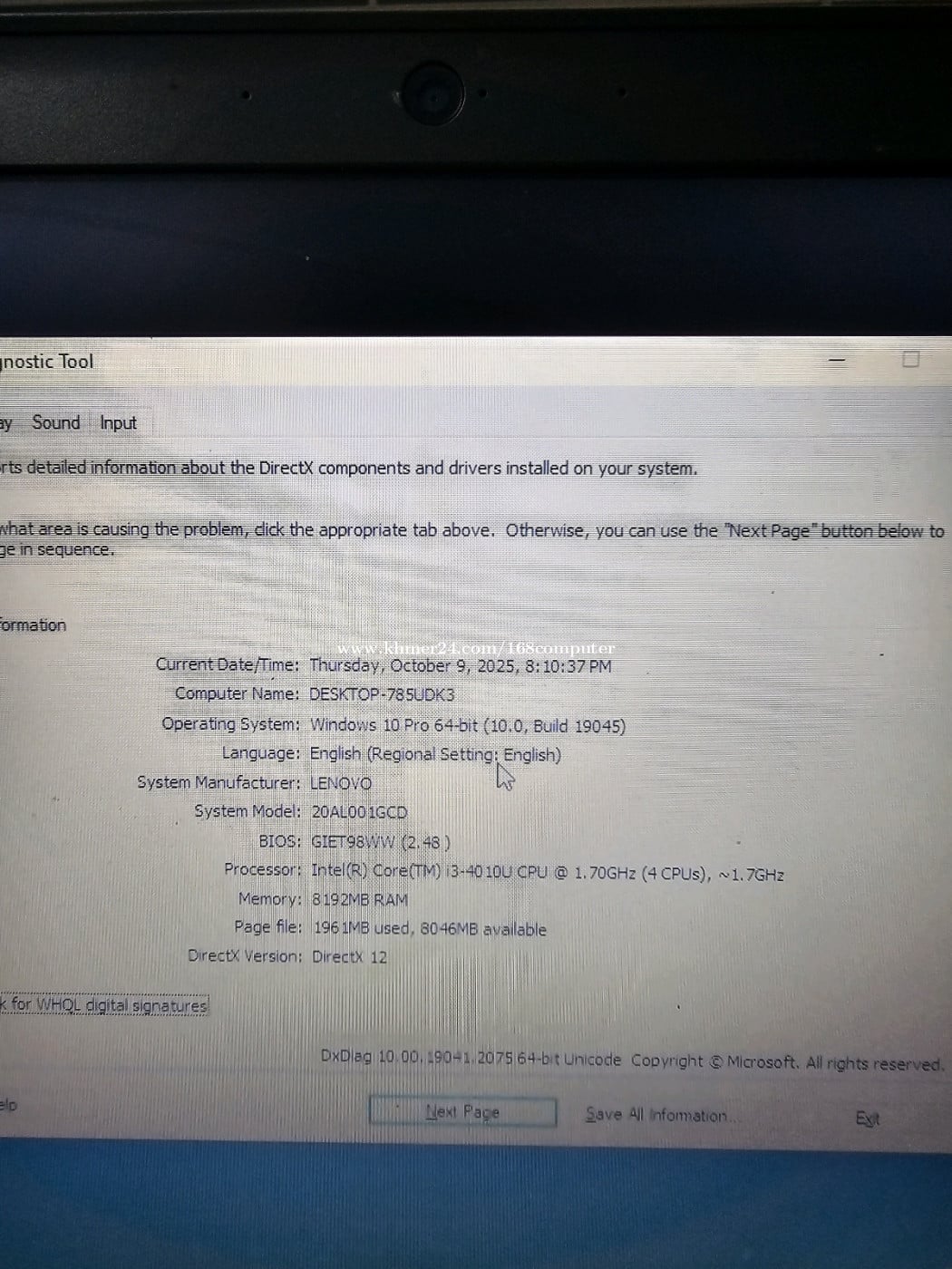 CPU core i5-4th RAM 8GB SSD 256GB ស្ទើសំបក 85$