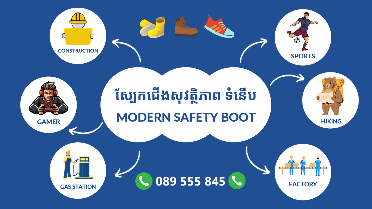 $2OFF6ស្បែកជើងសុវត្ថិភាពគុណភាពខ្ពស់កវែងម៉ូតថ្មី / Safety Boot High Quality12, Nov 2025 • Ruessei Kaev, Phnom Penh .$25$27