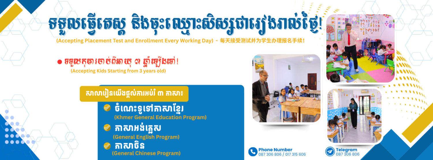 Chinese Program Supervisor (អ្នកគ្រប់គ្រងកម្មវិធីភាសាចិន)1d • Mean Chey, Phnom PenhFull-time • 2Year+ Experience$500+
