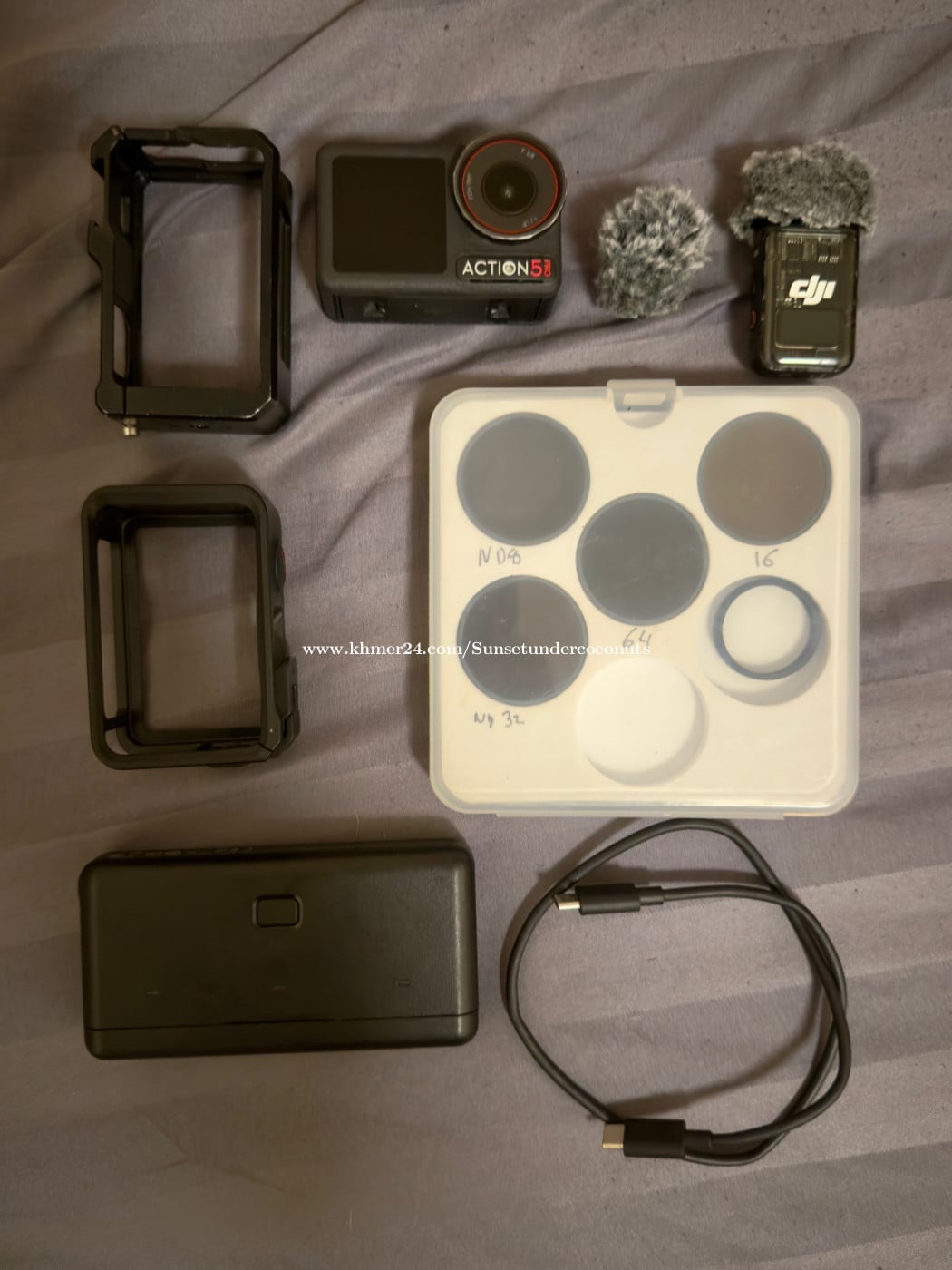 DJI action 5 Pro + 3 batteries excellent condition Selfie stick DJI Mic 2 ND filters 8/16/32/64 2 cases for camera DJI / Ulanzi (metal) Telsesin case waterproof And more camera mount accessories (see on photo)