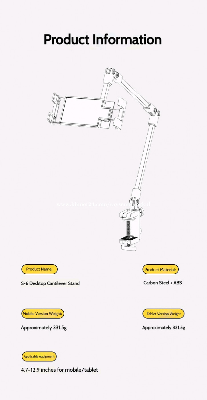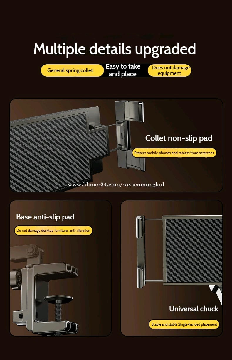 ជើងទម្រទូរស័ព្ទបត់បែនបានស្រួល ដាក់ជាប់គ្រែគេងមើលទូរស័ព្ទស្រួល Adjustable Tablet Stand Desk Bedside Rotatable Foldable 3 Sections Arms Lazy Tablet Bracket for 5-12 inch Phone iPad Kindle Spec products : M01_k73 តម្លៃ Price: 9$ សូមទំនាក់ទំនងទិញ Sale: https://t.me/Mungkul077 Channel: https://t.me/blackholesstore Facebook: https://www.facebook.com/profile.php?id=61556326415298&mibextid=ZbWKwL