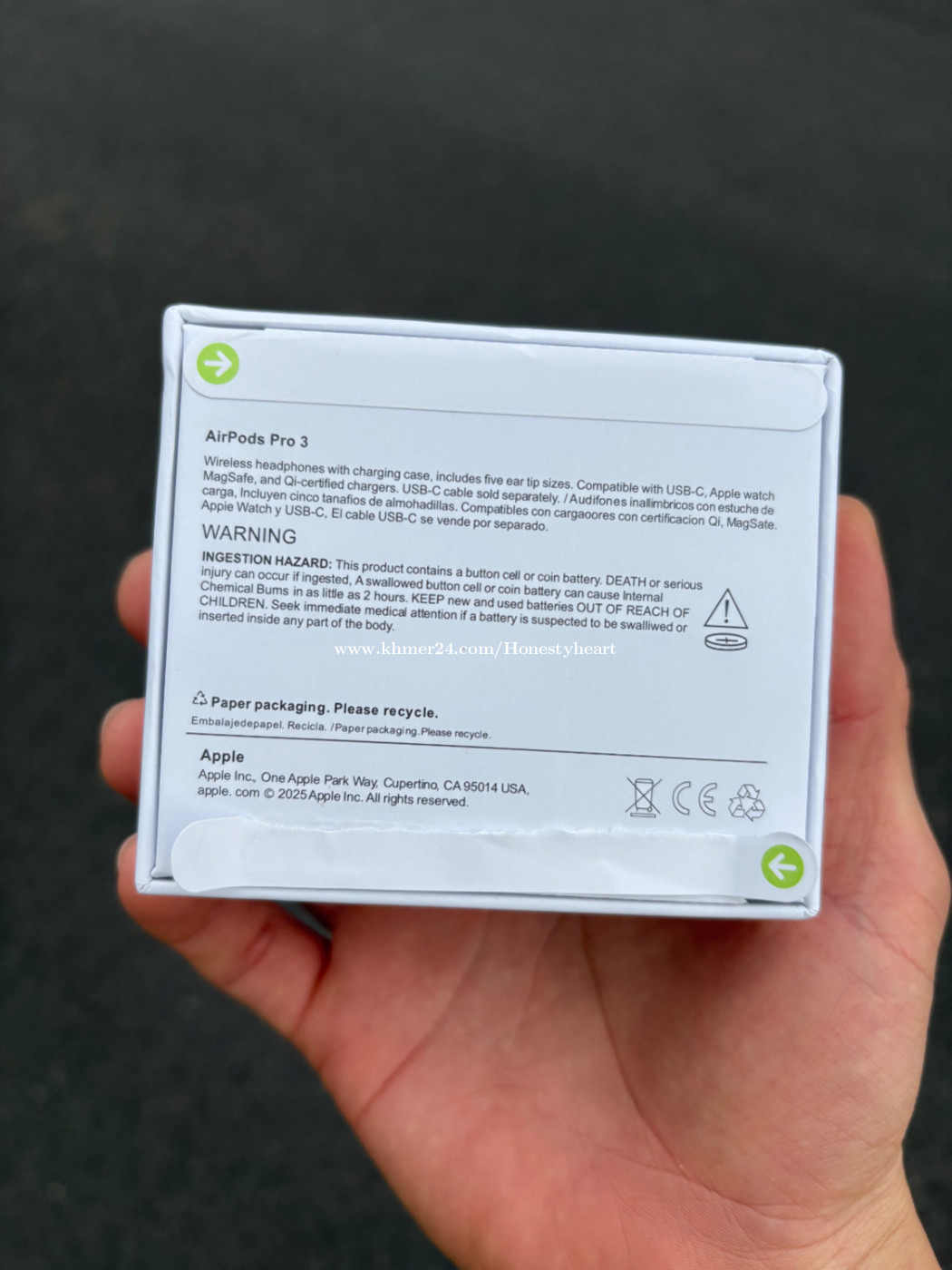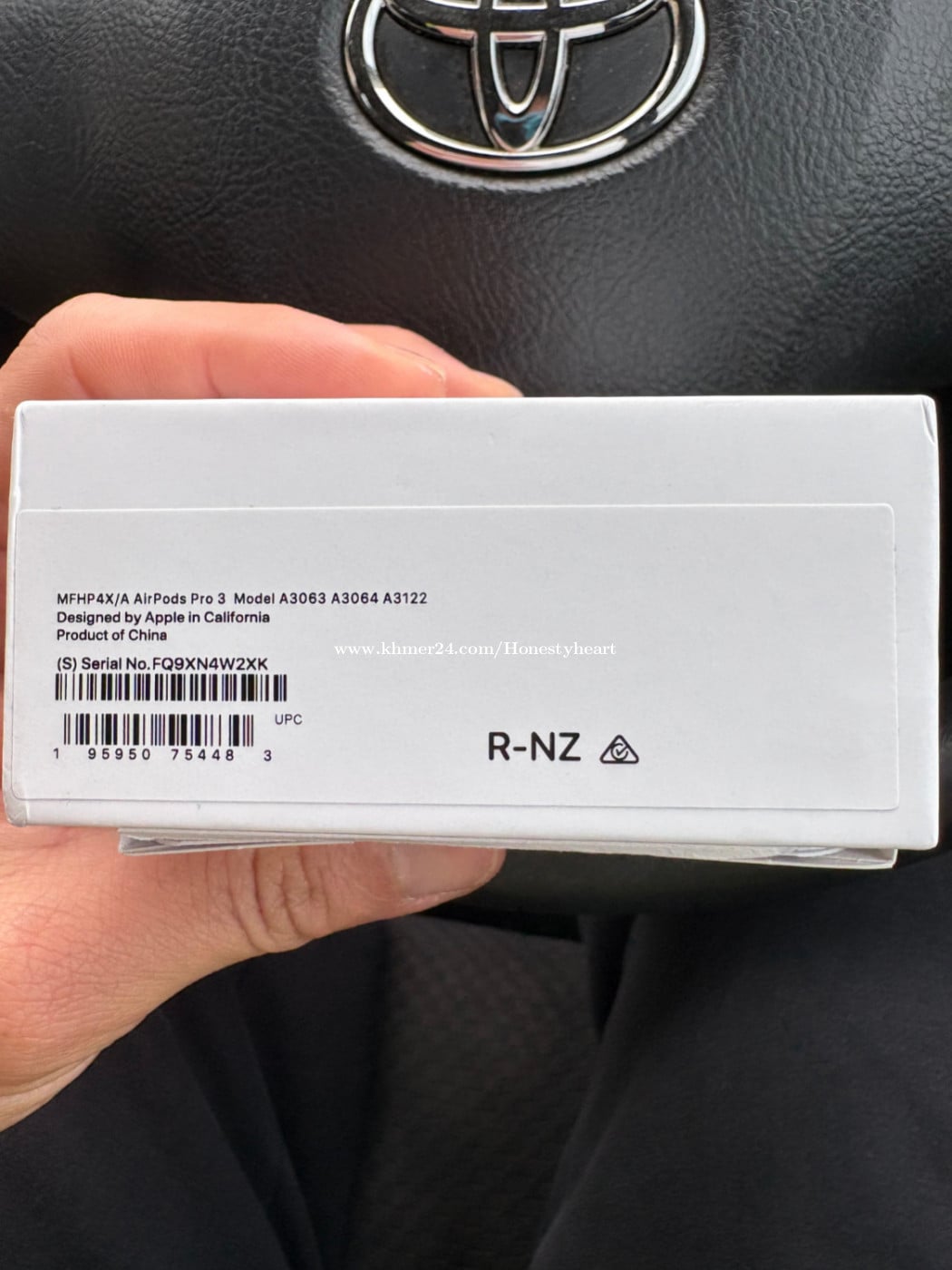កាសAirpods Pro 3 ថ្មី ផលិតផលថ្មី សំបកបើកតែមិនទាន់ប្រើឡើយ ផលិតផលនេះទិញនៅស្រុកគេ(ខ្ញុំពុំមានធានាឡើយ) This product is from Abroad (I have no warranty) តែខ្ញុំមានវិកយបត្រដែលទិញពីហាង អាចមើលក្នុងរូបបាន I have the purchasing receipt you can check as proof Telegram @Veayo https://t.me/Veayo10 You can check the serial number with apple. ចំនាំ ចុងខែ១២ទើបផ្ញើទៅដល់ខ្មែរ អាចបញ្ជាទិញមុនបាន បើសិនជាចាប់អារម្មណ៍អាចទំនាក់ទំនងកុម្ម៉ង់មុនបាន សូមទំនាក់ទំនងលេខ 0766666xxxClick To Call លេខមានតេលេក្រាម