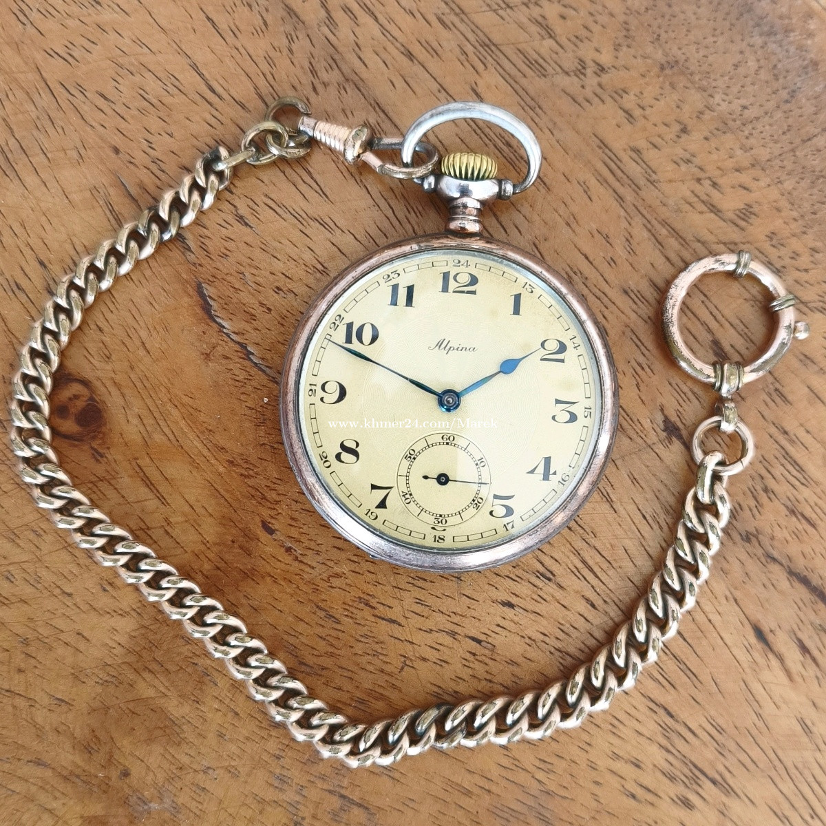 Alpina Pocket Watch Silver Case Around 100 years old Good working condition I speak only English