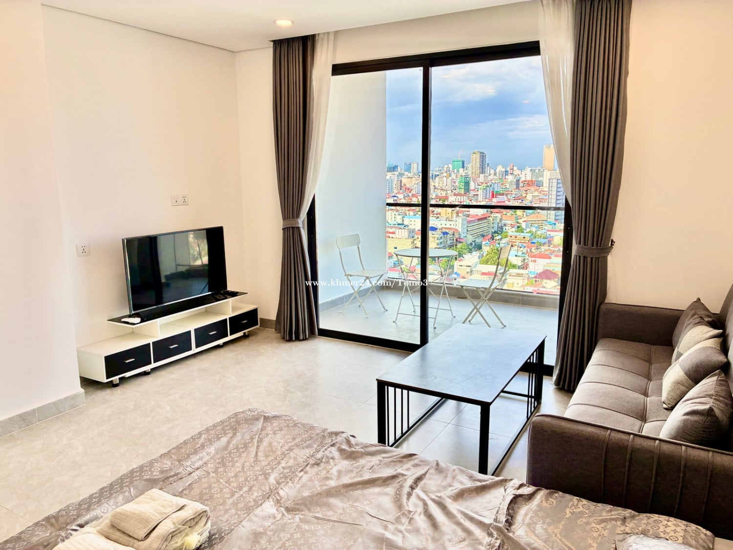 ANATA RESIDENCE For Rent Price : $400/month (can nego) Floor : 20 Size : 52.03m2(Gross)/40.02m2(Net) Type : Studio room Electric: $0.25/kwh Water: $0.60/m3 Free Management fee Free Gym&Pool ・included management fee Home appliances furniture Dishes microwave kettle balcony table and chairs gym & pool ※wifi ・exclded electric water car parking moto parking Deposit:1 month Rent:1month