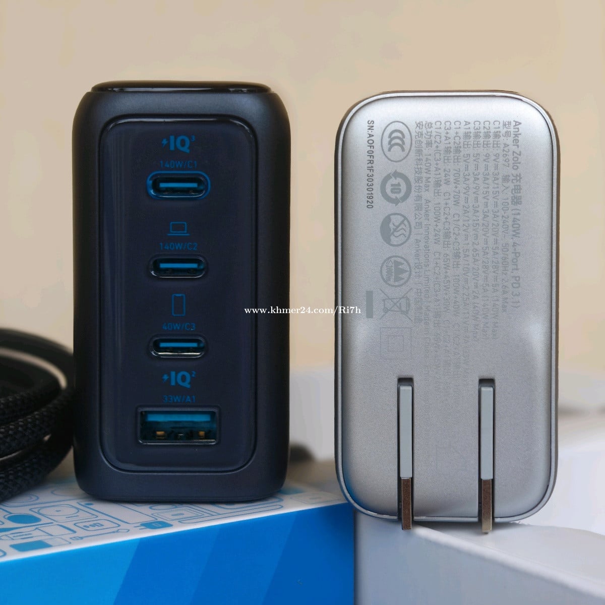 Anker 140W Zolo Charger ថ្មី ថែមខ្សែ USB-C 1.5m