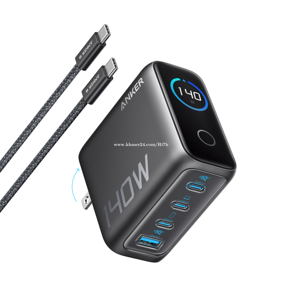 Anker 140W Zolo Charger ថ្មី ថែមខ្សែ USB-C 1.5m