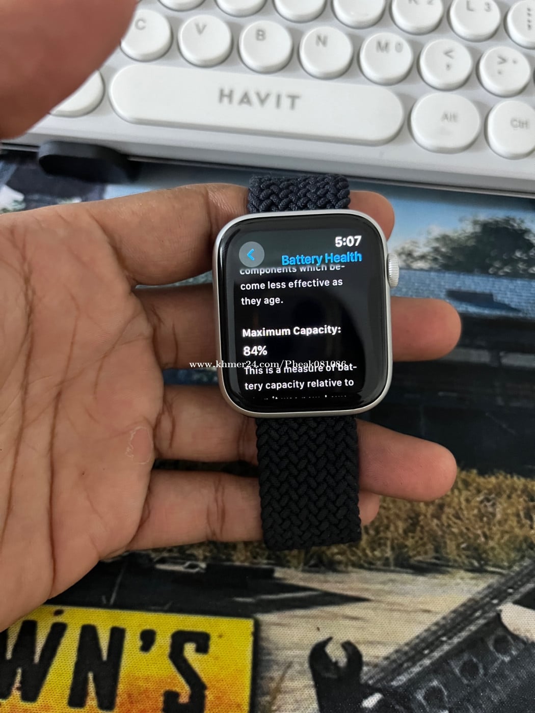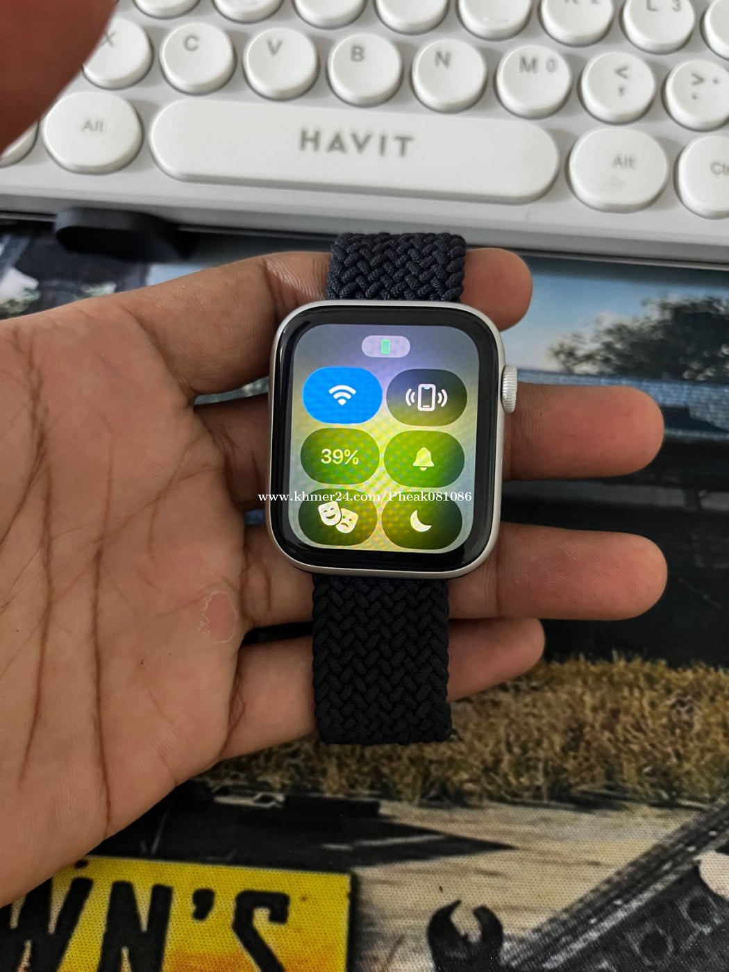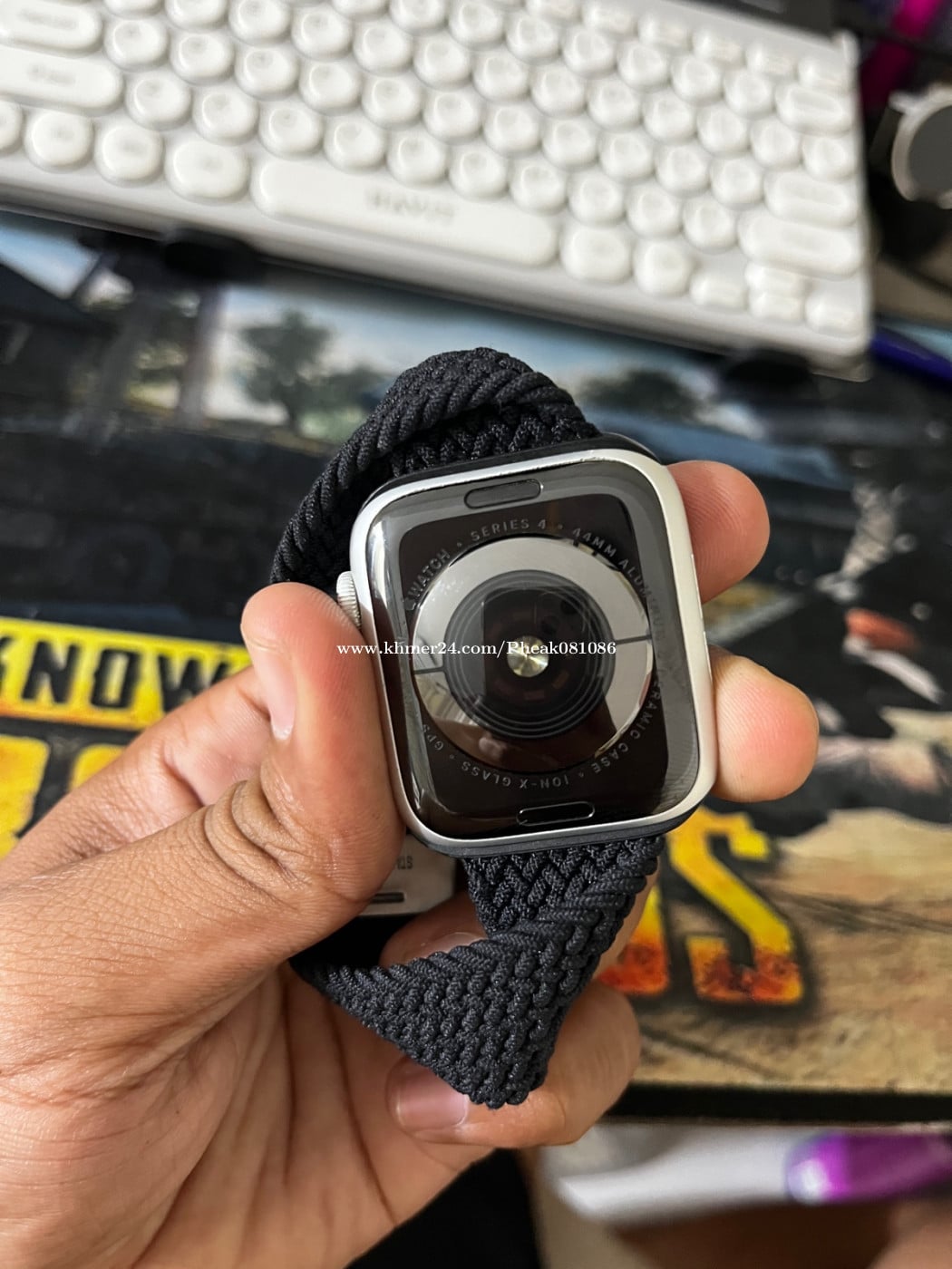 Apple Watch s4 44mm ស្អាត់ 97% ថ្ម 84% មានខ្សែសាក មិនដែលជួសជុល នៅសំនុំហ្សីន
