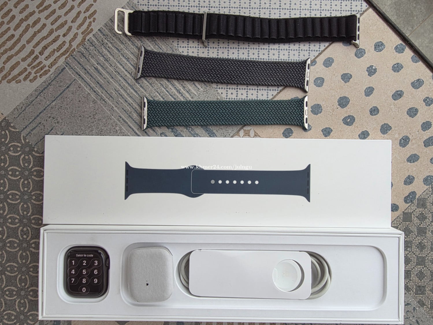 Apple Watch Series 7 stainless steel 41mm black Excellent condition, like new. - Full box - 1 original apple Loop Blue untouched, sealed - 1 Alpine loop Black - 1 scratch loop Black Can Add - 1 original Apple braided loop Green = $40 - 1 original Apple braided loop Black = $40 Everything is in excellent condition. No scratch, no dent, never repair