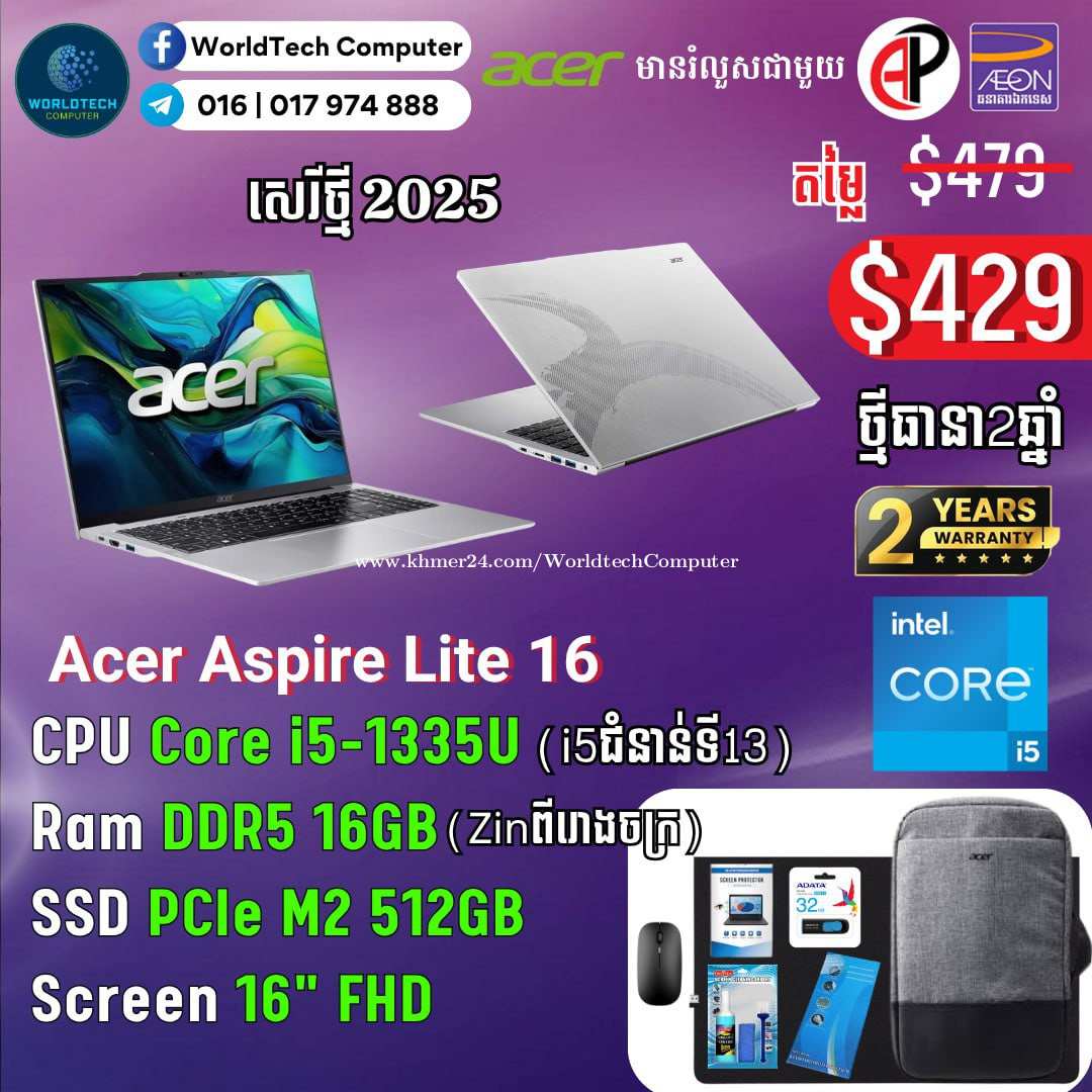 ថ្មីកេស ធានា២ឆ្នាំ Aspire lite14 N150 RAM 8G M2 256G 14" WUXGA New2025=264$ Aspire lite14 N150 RAM 8G M2 512G 14" WUXGA New2025=289$ Telegram 017974xxxClick To Call , 011777xxxClick To Call