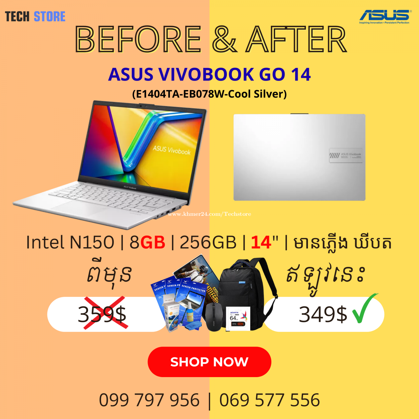 ASUS E1404TA-EB078W-Cool Silver Intel® N150 / LPDDR5X 8GB / 256G UFS / 14 " FHD (1920 x 1080) IPS-level Panel 60Hz / Backlit Chiclet Keyboard / Backpack / Win11 / 2Y Warranty+1st Year Local Perfect Warranty