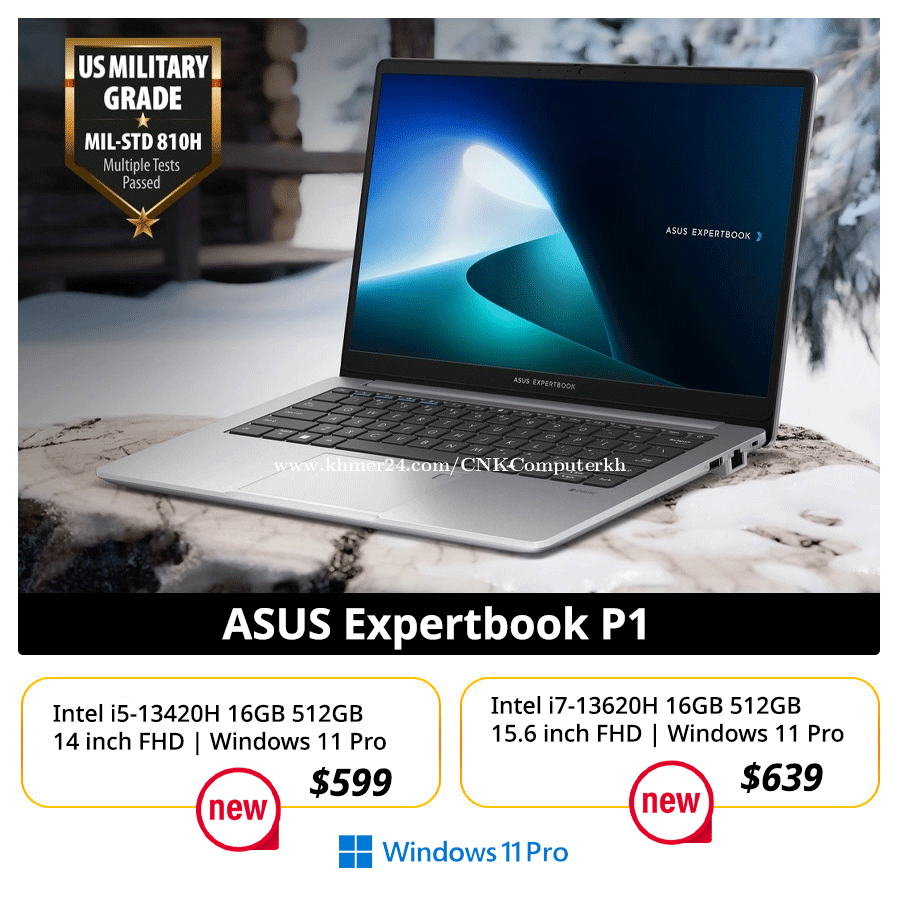 ๐ ASUS Expertbook P1 ----------------------- ๐ Intel Core i5-13420H 16GB 512GB 14 Inch FHD Price 649$ >> $599 ๐ Intel Core i7-13620H 16GB 512GB 15.6 Inch FHD Price 689$ >> $639 ------------------------------------- โ๏ธ แแแถแแแแแแ 0930957xxxClick To Call 77 ๐ฌ Telegram : t.me/cnkcomputer93 ๐ Website: https://cnkcomputer.com/