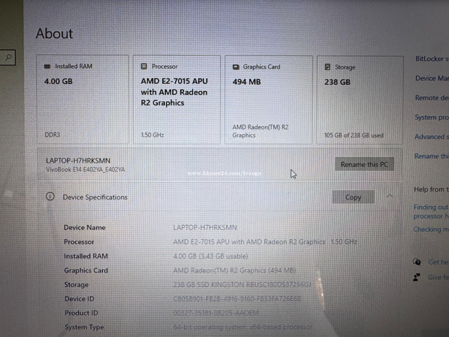 Laptop ASUS 4Gb RAM & 238Gb SSD hard drive