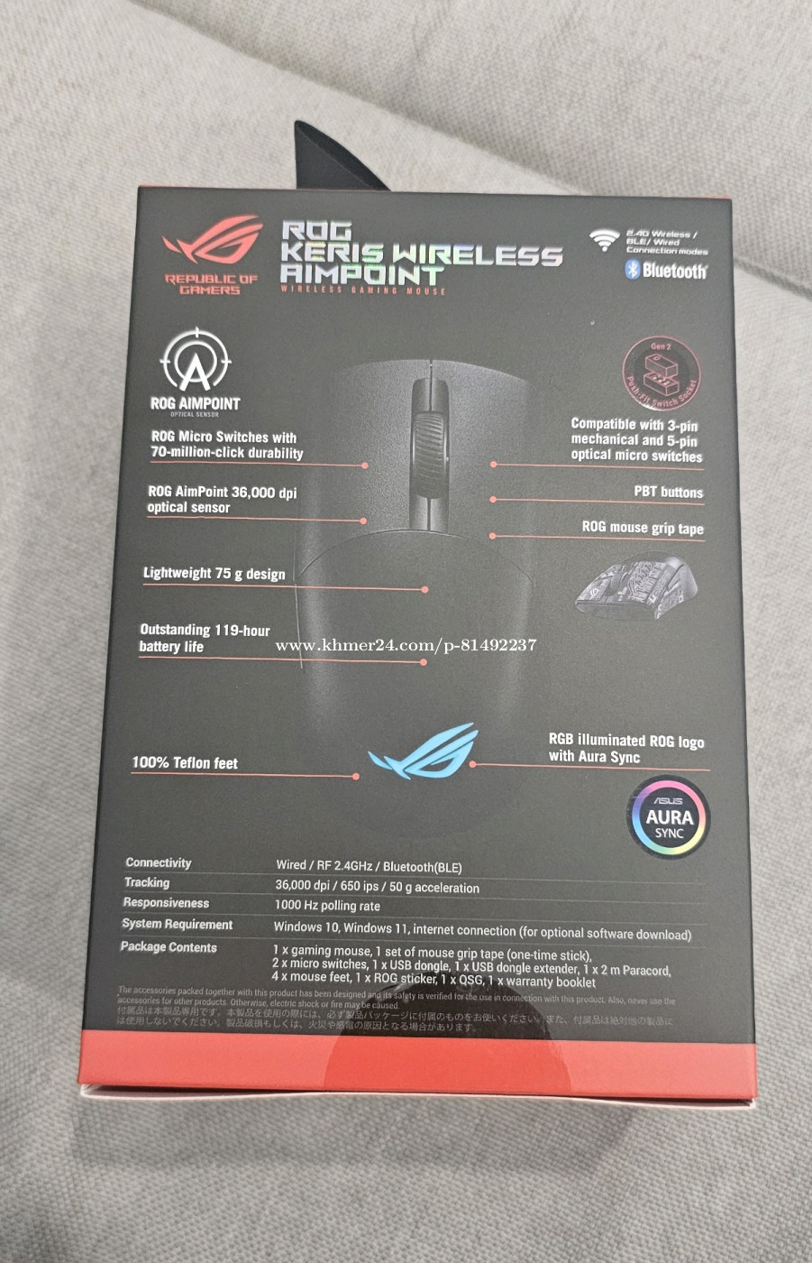 ASUS ROG Keris Wireless Aimpoint Gaming Mouse Right-Handed Ergonomic Only 75g Tri-Mode Connectivity, 42K DPI, up to 119Hr Battery, PC/Mac Support Brand-new.1 year warranty.