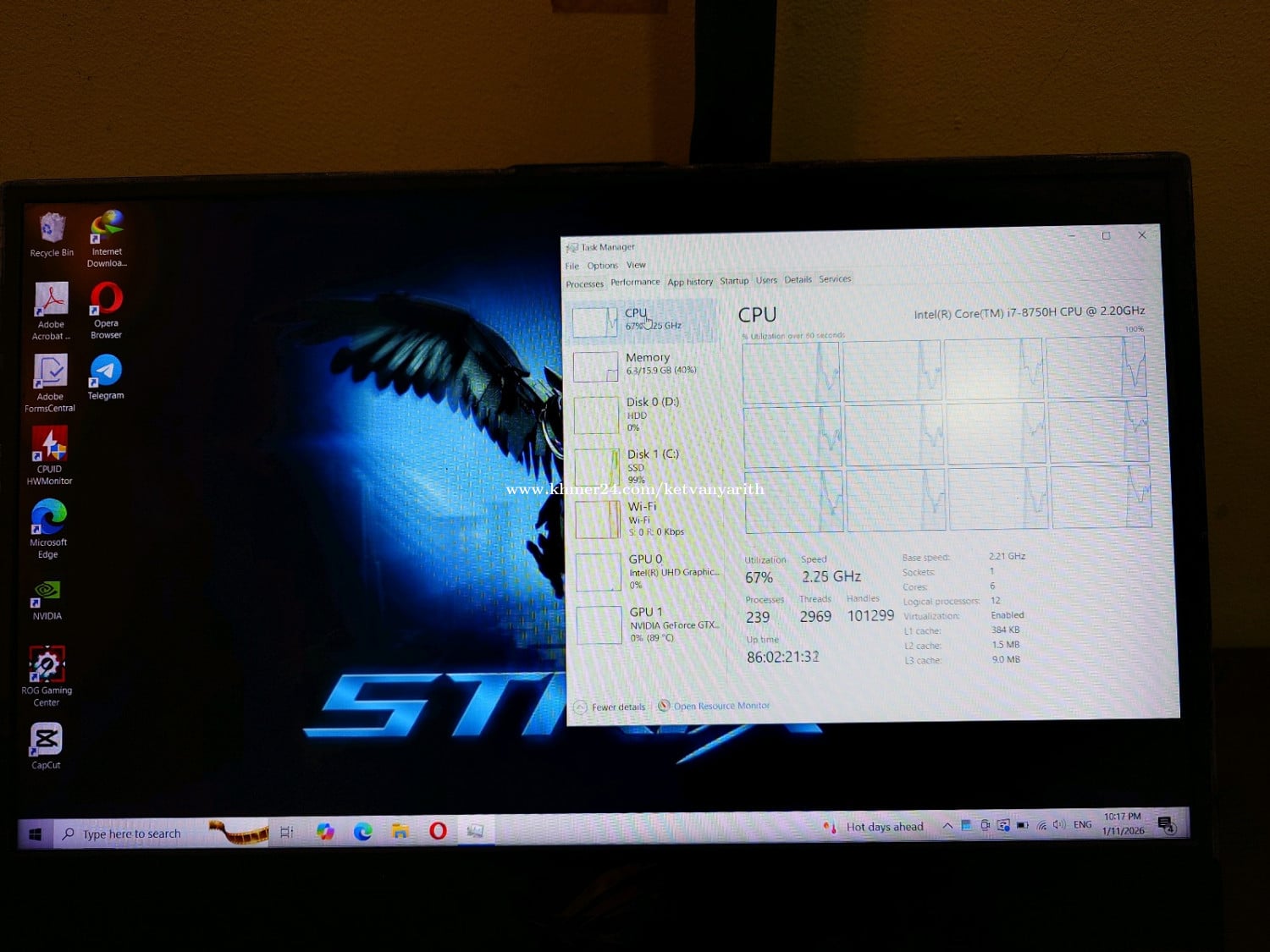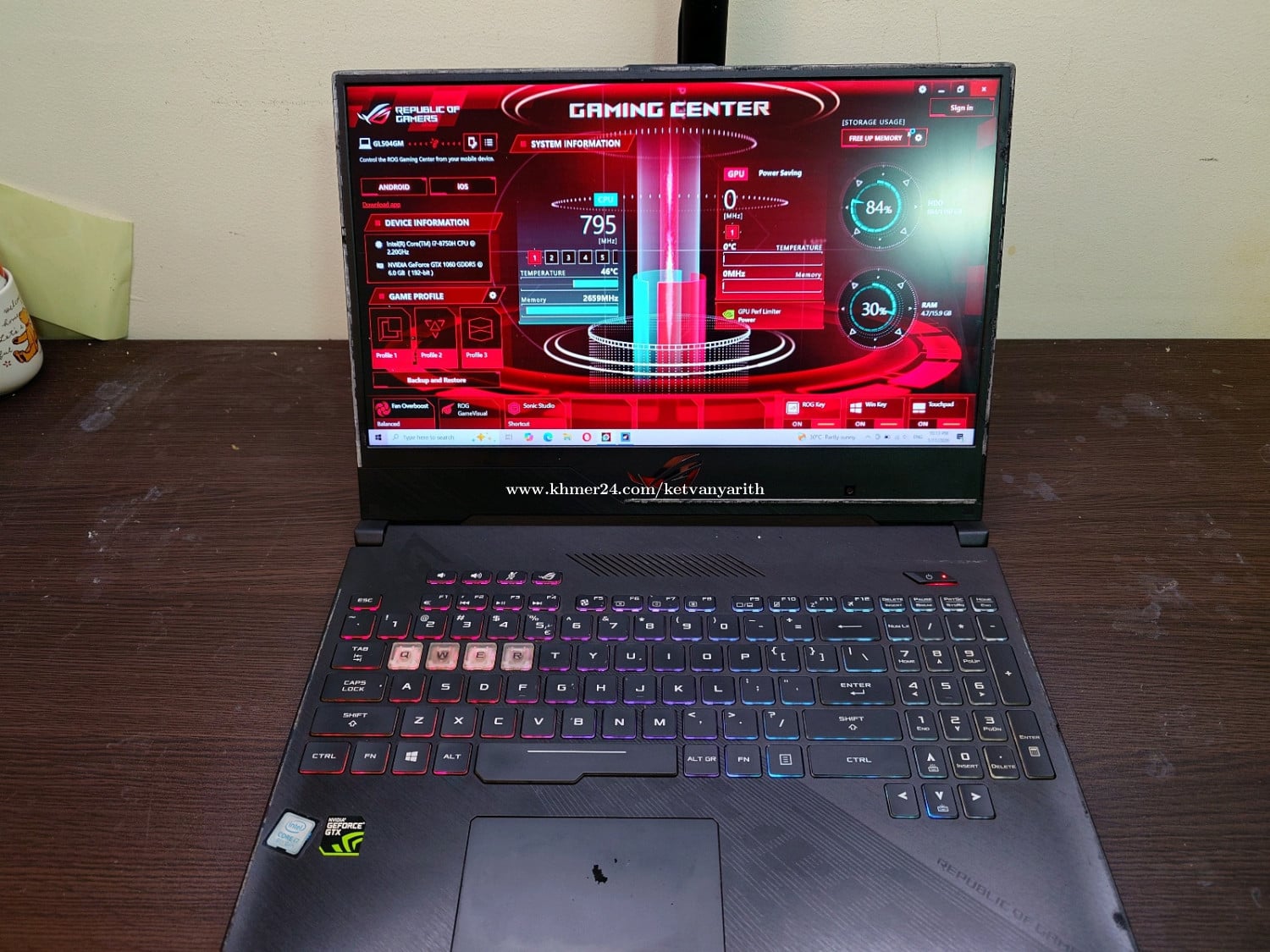 លក់ Laptop Asus ROG Strix Hero II ប្រើផ្ទាល់ខ្លួន ម៉ាស៊ីននៅដំណើរការធម្មតា CPU Intel ជំនាន់ទី8 Core I7-8750H 6 Cores 12 Threads VGA GTX 1060 Ram 16gb Storage: 256gb SSD + 1Tb hard drive Keyboard RGB Screen 15.6" -តួរាងចាស់បន្ដិច -អេក្រង់ខូច លោតញាក់ -ទើបប្ដូរថ្មនិងកង្ហារថ្មី