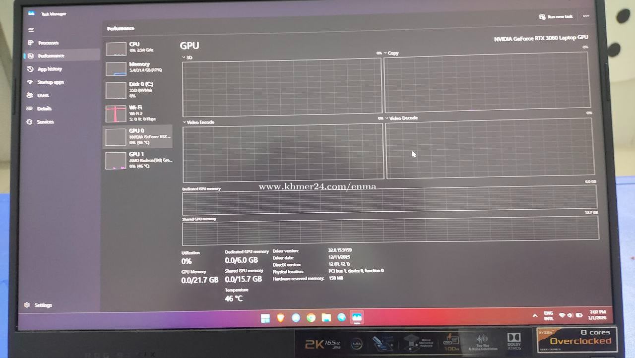 Asus ROG Strix Scar G733QM តម្លៃ: 829$ AMD Ryzen 9 5900hx (16 CPU) RTX 3060 (GDDR6 6GB) 17inch QHD 2K 165hz Ram: DDR4 32gb Storage M2 1TB Telegram: 011425xxxClick To Call/@haksakal