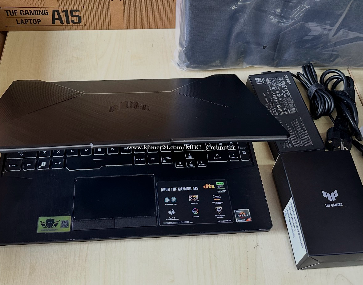 ឆ្នាំ២០២៤ VGAដាច់ 4GB រៀនIT អគ្គិសនី គូប្លង់ លេងហ្គេម មួយកំផ្លេ Asus TuF A15 CPU AMD Ryzen5-7535HS ~3.3Ghz(12CPUs) Ram DDR5 16GB 4800MT/s SSD 1TB (512GB x2) screen 15.6inch Full HD 144Hz adapter original