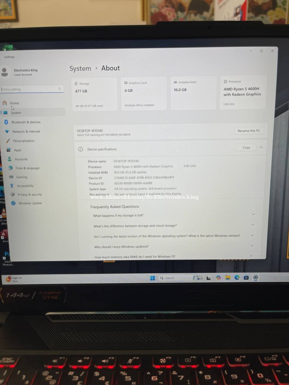 The Best for Gaming and Design Asus TUF Gaming A17 ➡️ CPU : Ryzen5 4600H 3.00GHz ➡️ RAM : 16GB ➡️ SSD : 512GB ( Fast Speed ) ➡️ VGA 1 : NVIDIA GeForce GTX 1650, GPU 8GB ➡️Display : 17.3” FHD 144Hz ➡️ Keyboard Light RGB ➡️ Price : 549$ ➡️ Warranty : 2 months -------------------------------- ហាងយើងខ្ញុំមាន ទិញ លក់ ជួសជុល វៃដូរ គ្រឿងអេឡិចត្រូនិច ថ្មីនិងមួយទឹកគ្រប់ប្រភេទ ទំនុកចិត្ត គុណភាព ទំនួលខុសត្រូវ តម្លៃក្រោមទីផ្សារ ទំនាក់ទំនង Smart:093605xxxClick To Call/Cell card:0764000xxxClick To Call ទីតាំងហាង: ផ្ទះលេខ១៧៩ ផ្លូវលេខ១១ ក្នុងបុរីពិភពថ្មីកួរស្រូវ២ ភូមិក្រាំងស្វាយ សង្កាត់ព្រែកកំពឹស ខណ្ឌដង្កោ រាជធានីភ្នំពេញ ផែនទី https://maps.app.goo.gl/J9U8YEJ7TzLnvXMZ9 Telegram: https://t.me/Electronicsking2023