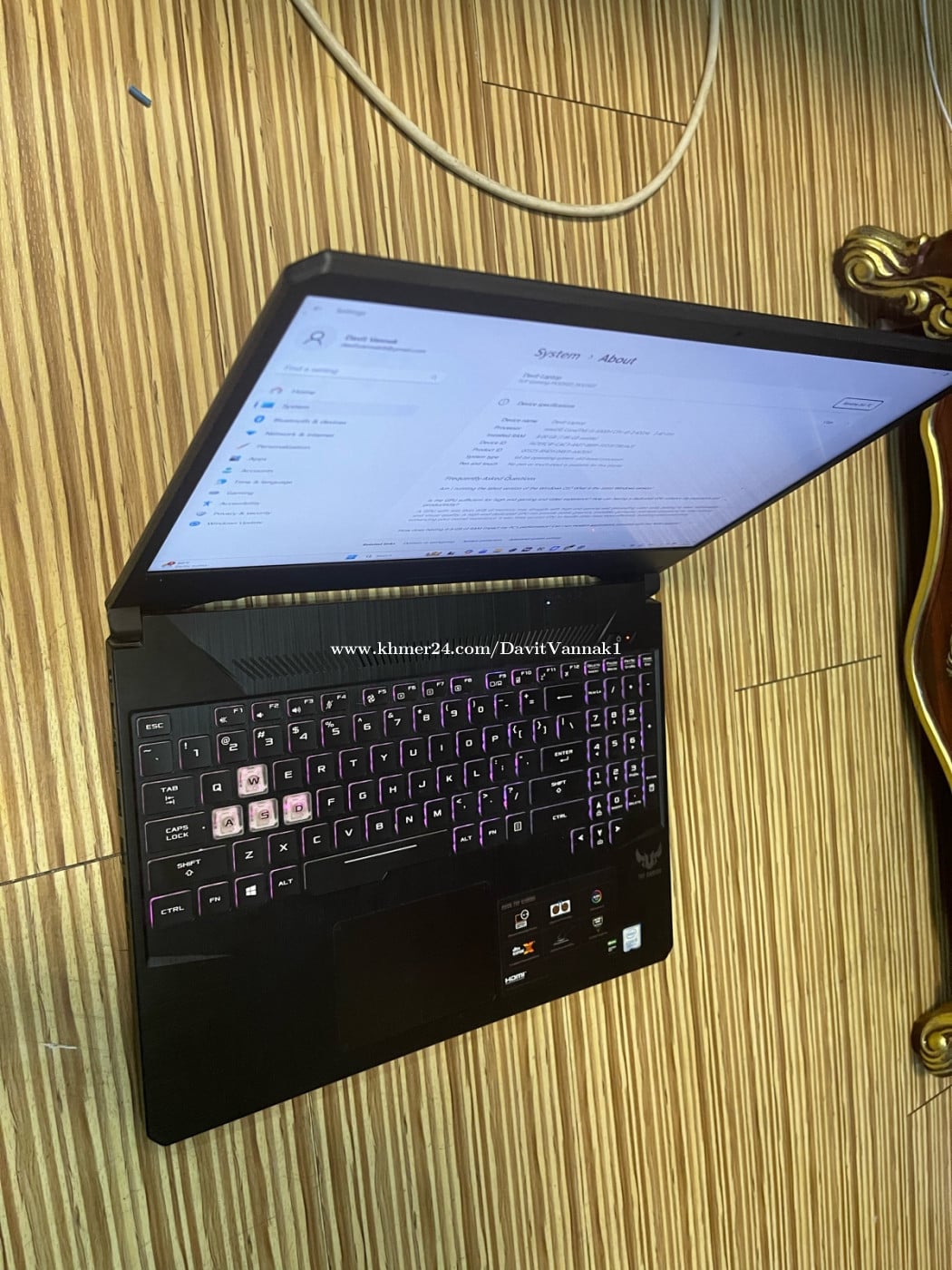 ASUS TUF FX505GT Specs: • CPU: Intel® Core™ i5-9300H • RAM: 8GB DDR4 (upgradeable) • Storage: 512GB M.2 SSD • Display: 15.6” Full HD 60Hz, IPS-Level • GPU: NVIDIA GTX 1650 4GB • Keyboard: Backlit Chiclet Keyboard • OS: Windows 10/11 License • Battery: 48WHrs, 3-cell Li-ion • Weight: 2.2 Kg | Color: Bonfire Black • Condition: ថ្មីខ្លាំង លក់ ASUS TUF FX505GT 15.6” i5 GTX1650 • ស្ថានភាពល្អ, ប្រើប្រាស់តិច • អាចលេងហ្គេមសាមញ្ញ និងរៀនបានល្អ • មានក្តារចុចពន្លឺ និង SSD ធ្វើឲ្យរហ័ស • តម្លៃពិសេសសម្រាប់អ្នកសិស្ស ឬអ្នកចាប់ផ្តើមហ្គេម