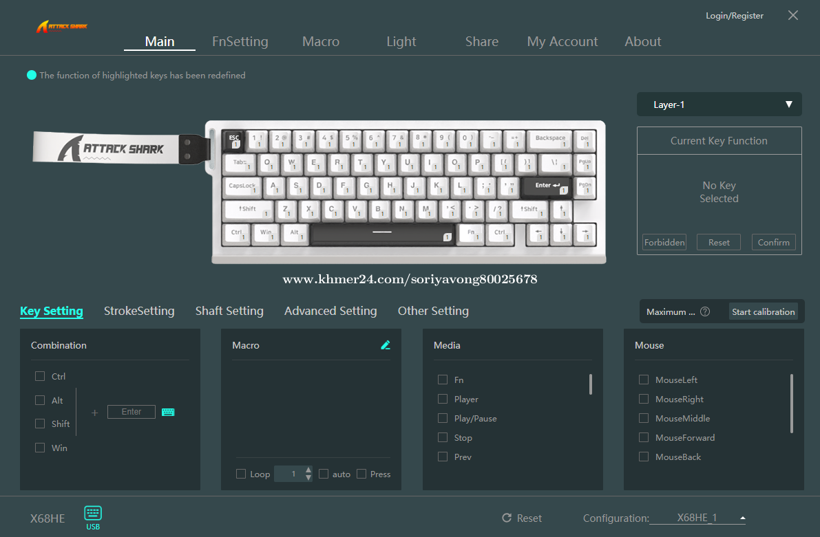 Attack Shark X68HE Rapid Trigger Type-C Wired Mechanical Keyboard វៃចេញក្នុងតម្លៃធូរៗចែកគ្នាប្រើ Full Box Set Mechanical Keyboard Attack Shark X68HE ដែលជាប្រភេទ Wired Type-C Full RBG ហើយជាប្រភេទ Hot-swap Switch ដោះដូរគ្រាប់ Switch និង Keycap បាន (Switch Color: Creamy White Switch: សម្លេង Typing ពិរោះ តែមិនរំខាន) Keyboard Model: Attack Shark X68HE Connection Type: Type-C Wired Mechanical Keyboard Switch: Hot Swap - White Switch (Creamy) ✅Specs: • 0.01mm Rapid Trigger Accuracy • 8000Hz Polling Rate, 0.125ms Latency • Adjustable Actuation Points (0.1-3.4mm) • One Key. Multiple Actions (DKS) • Web Driver & On-board Memory • RGB Backlight លក់ចែកគ្នាប្រើតម្លៃទន់ តម្លៃ: 40$ (ចរចារ) ចាប់អារម្មណ៏អាចទាក់ទងមកលេខ 0962435xxxClick To Call (Telegram)