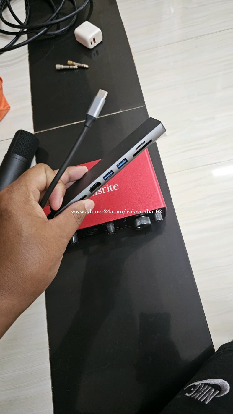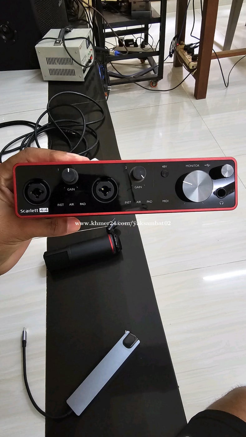 Audio interface focusrite Scarlett 4i4 3rd 99% ថតចំរៀង ផតខេស ការងារ Studio ឡាយហ្គេម ថតខាងក្រៅ អាចប្រើជាមួយទូរស័ព្ទបាន ដោយប្រើ ឌុយ USB type C Cover បទចំរៀង សម្រាយរឿង